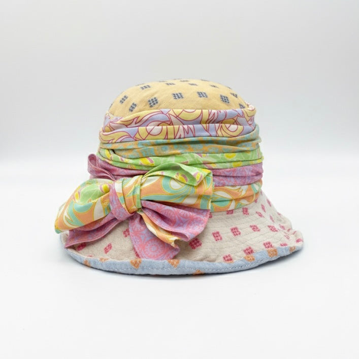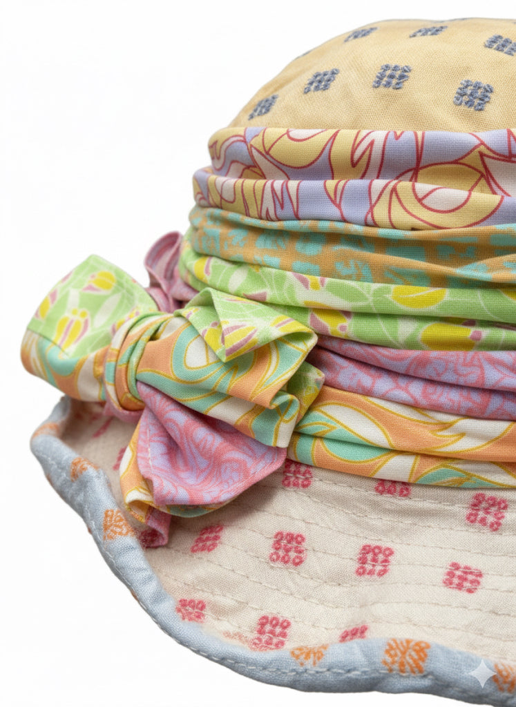 Handmade Cotton Hat with Wide Front Brim and Large Bow.