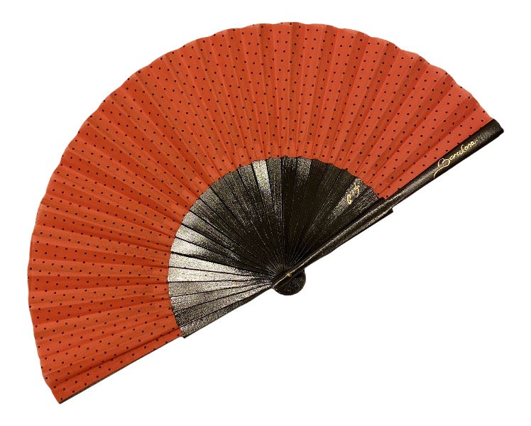 This handcrafted fan combines the strength of birch wood with the softness and freshness of printed fabric, creating a unique and elegant accessory.