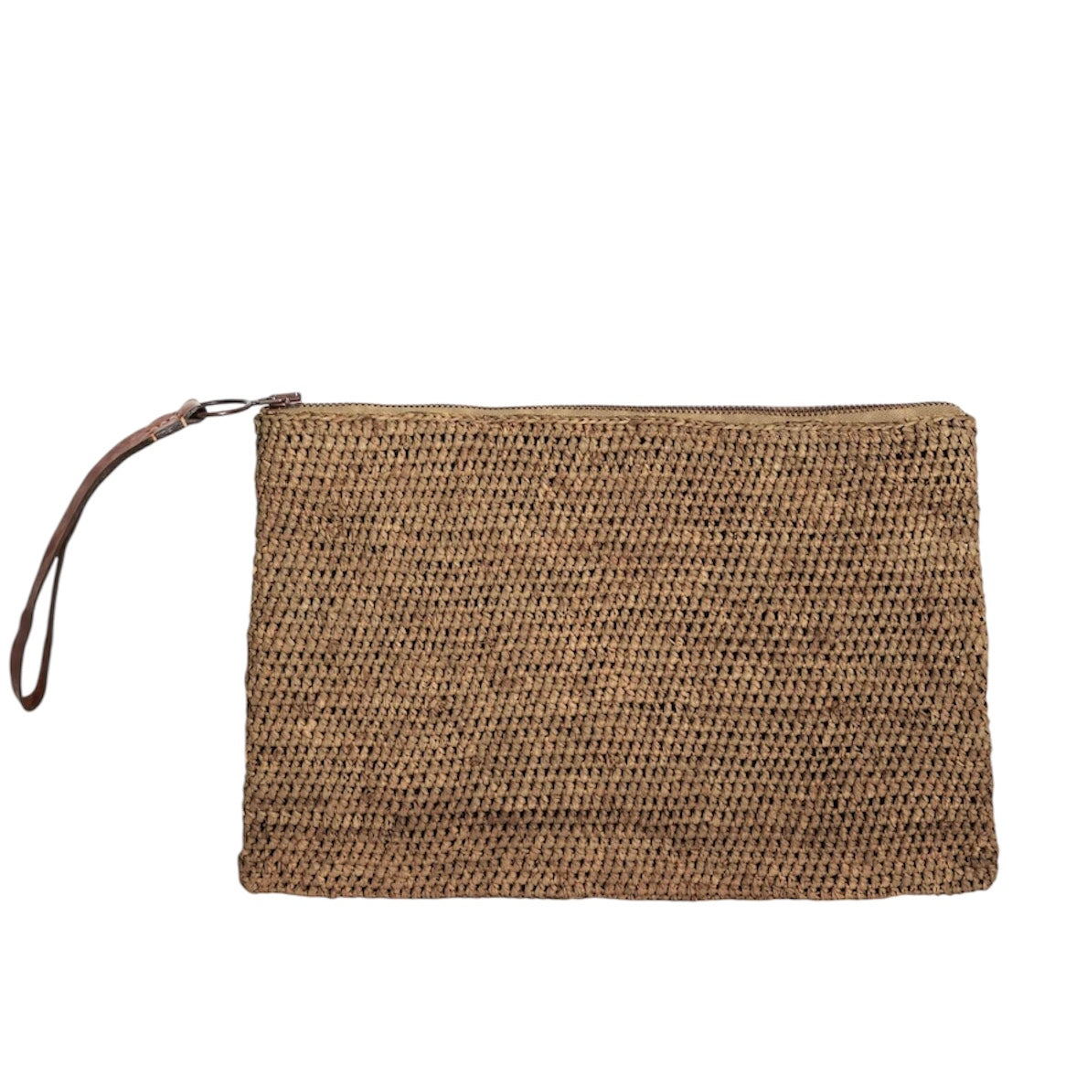Elegant and natural, this clutch bag combines handwoven raffia with genuine leather details for a sophisticated, eco-chic style. The compact design is ideal for carrying your daily essentials, while the leather wrist strap offers comfort and practicality on the go.