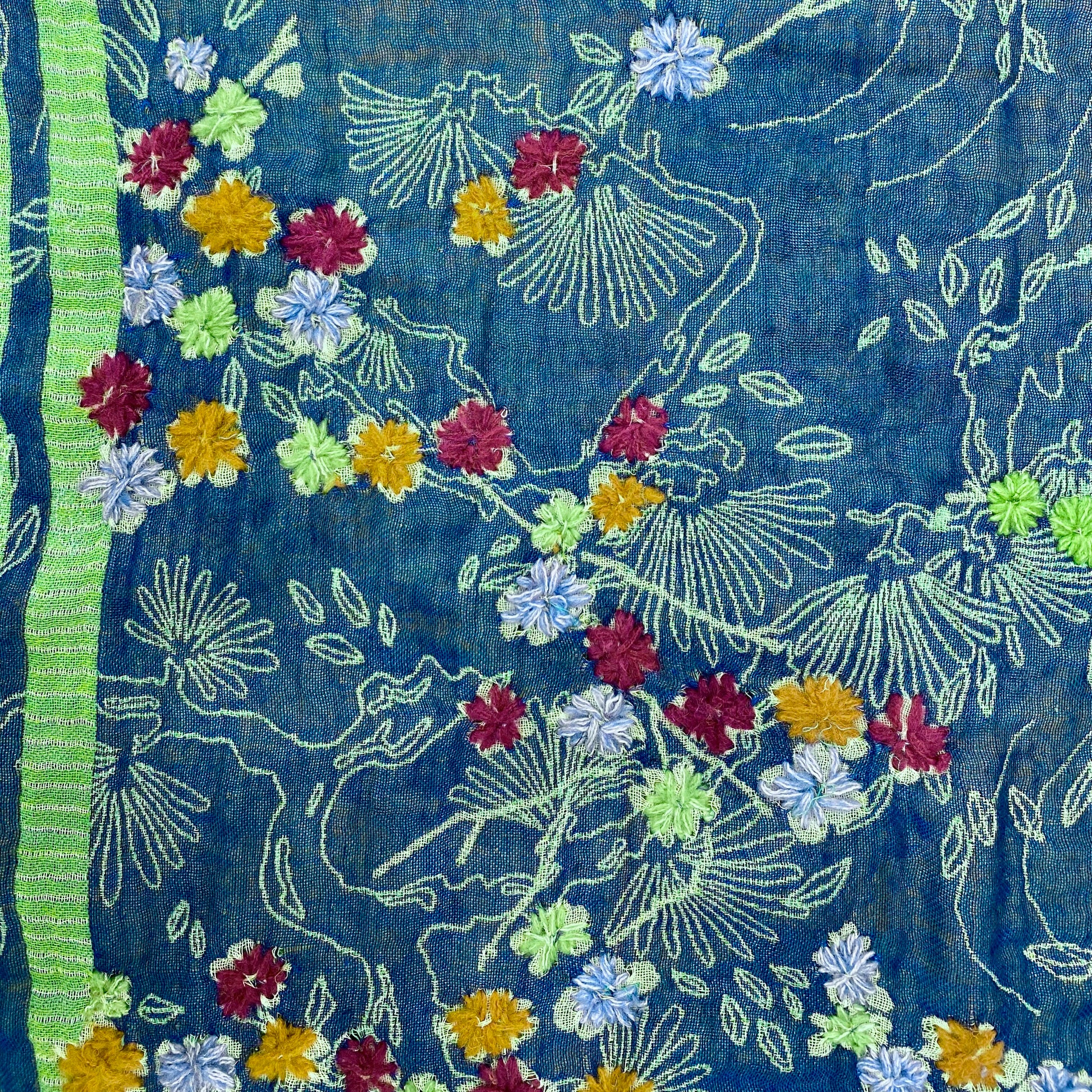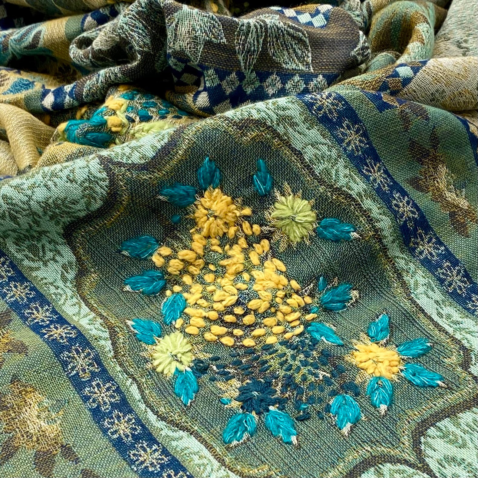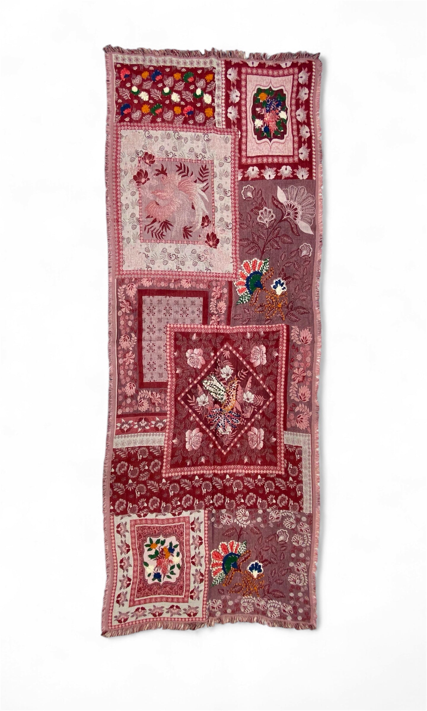 Crafted from a refined blend of cotton and wool, this embroidered shawl combines lightness, warmth, and subtle elegance. Each piece features delicate embroidery that adds quiet texture and artisanal charm without overpowering its timeless simplicity. Soft to the touch and beautifully draped, it’s a versatile accessory designed for effortless sophistication in any season.