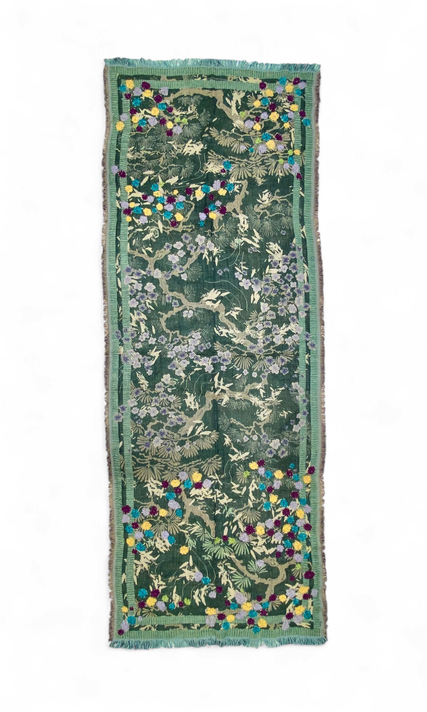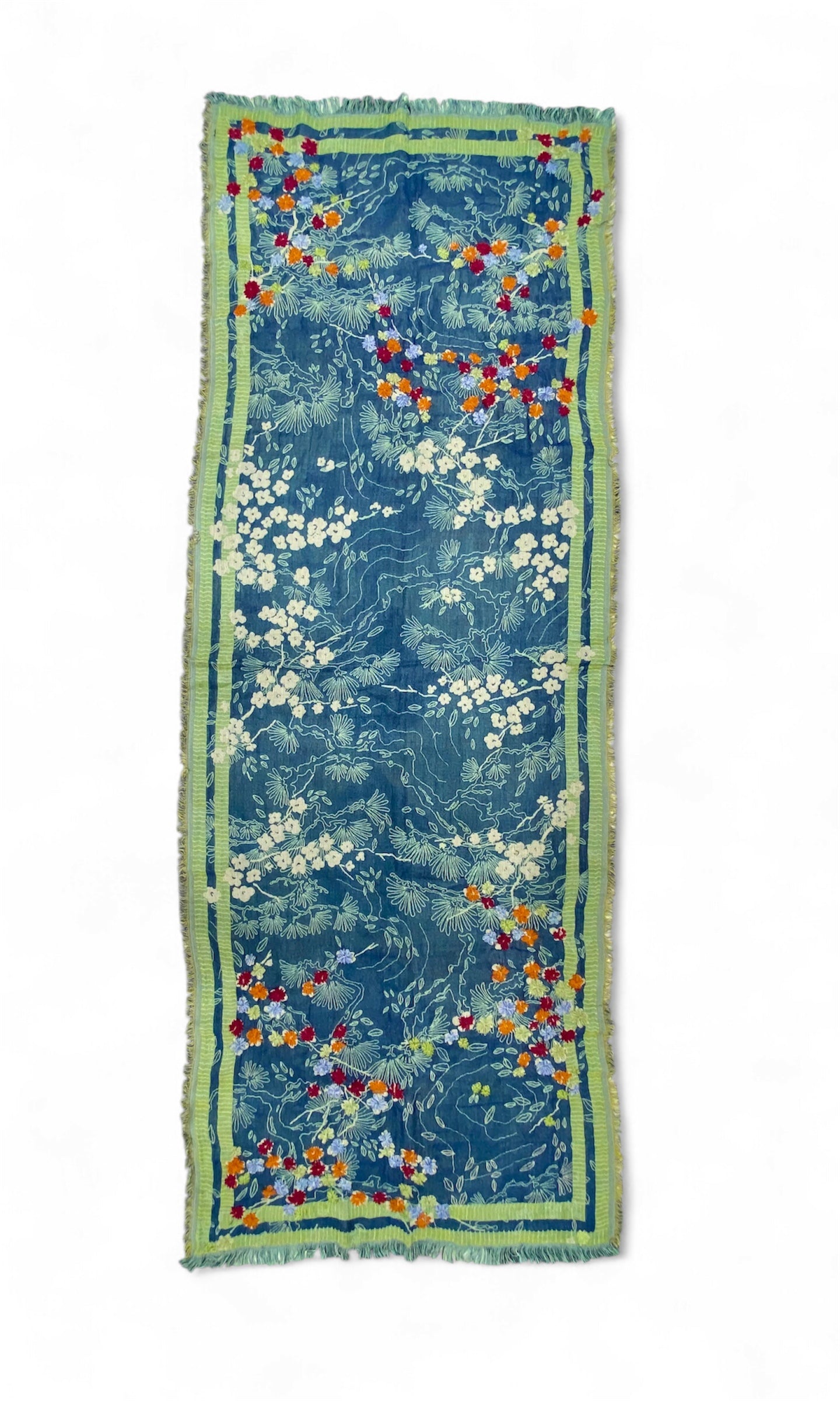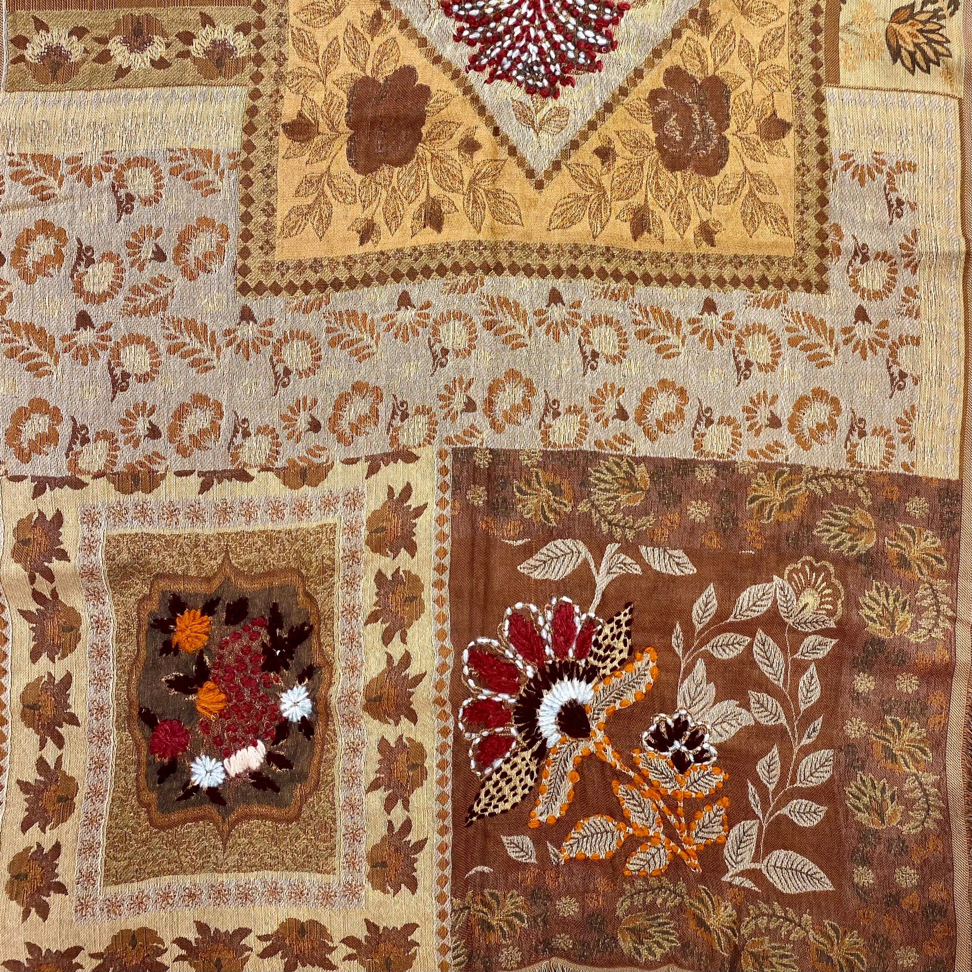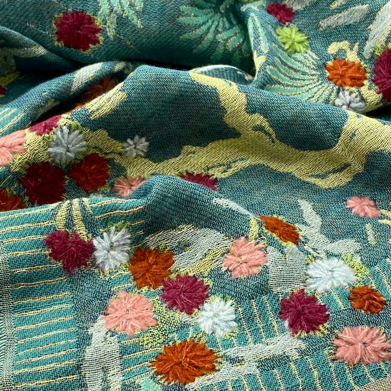 Crafted from a refined blend of cotton and wool, this embroidered shawl combines lightness, warmth, and subtle elegance. Each piece features delicate embroidery that adds quiet texture and artisanal charm without overpowering its timeless simplicity. Soft to the touch and beautifully draped, it’s a versatile accessory designed for effortless sophistication in any season.