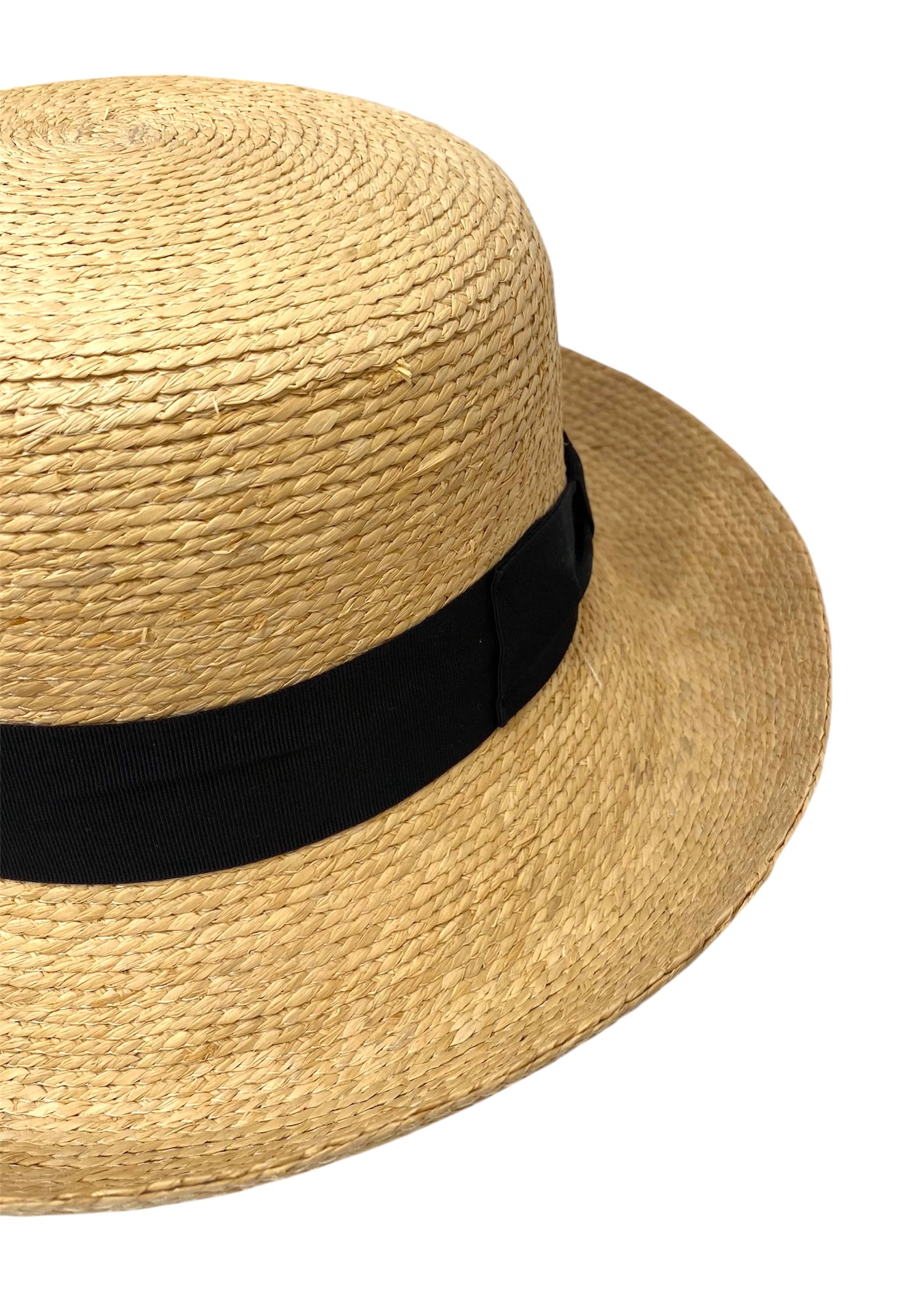 Handcrafted from natural fibers, this accessory blends tradition and style in a versatile and sophisticated piece. Its flat brim provides sun protection, while the band adds a classic and refined contrast.
