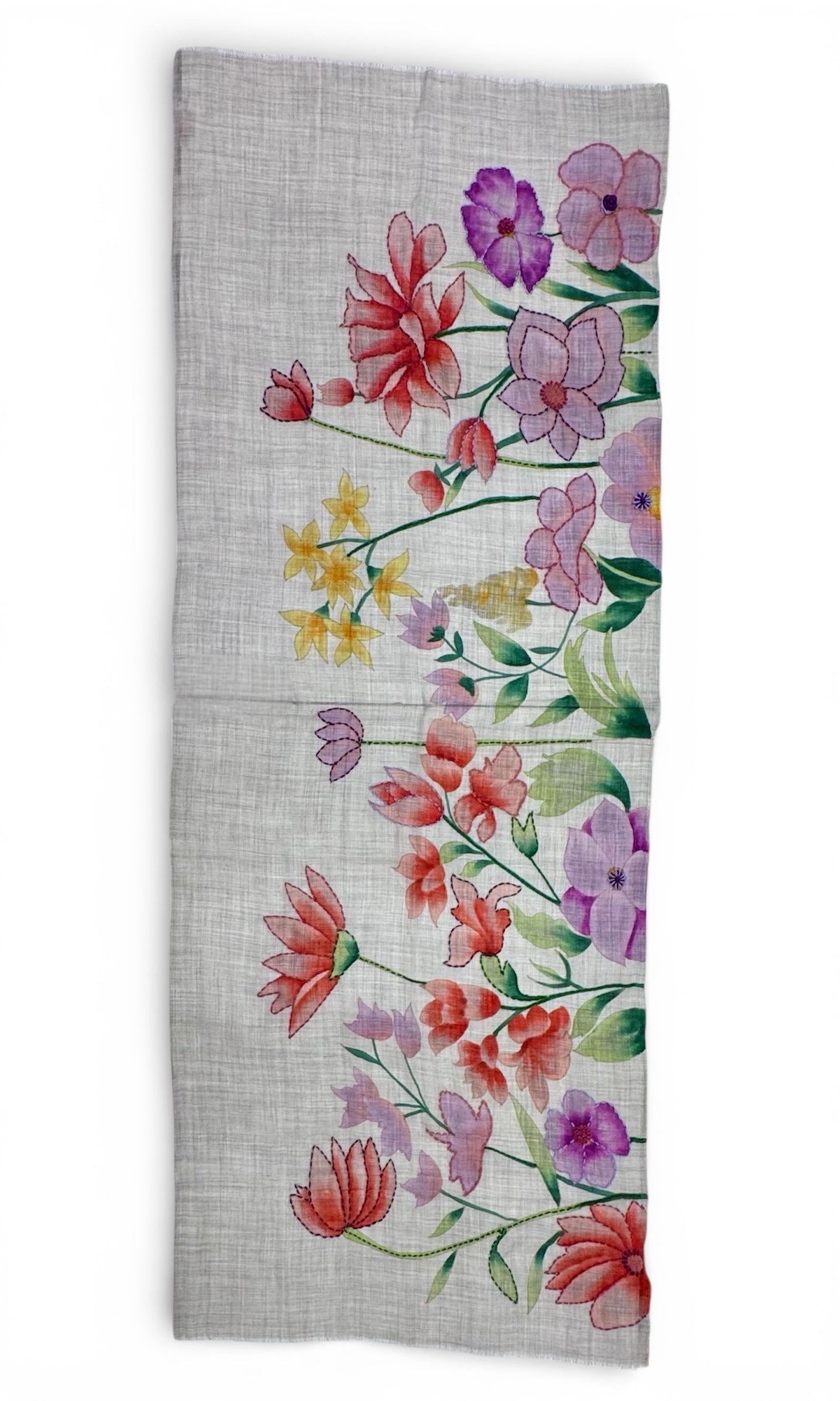 Descubre la suavidad y la elegancia de este exclusivo chal confeccionado en 100% lana merino. Ligero, cálido y transpirable, es perfecto para todas las estaciones del año. Cada pieza está pintada a mano, lo que la convierte en un diseño único con carácter artesanal.
