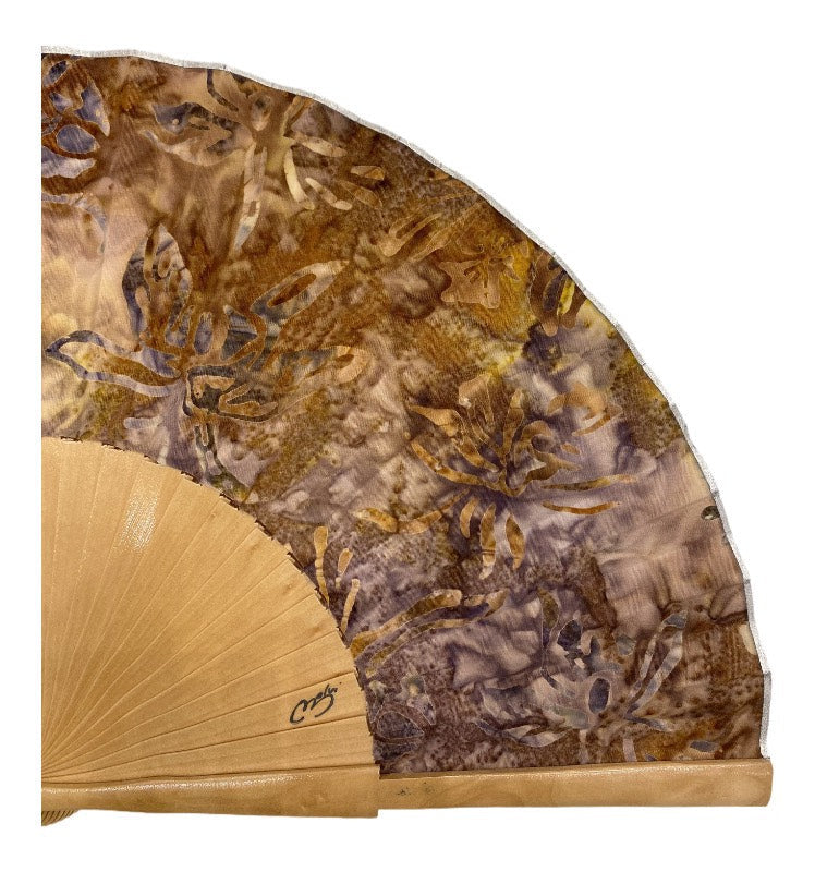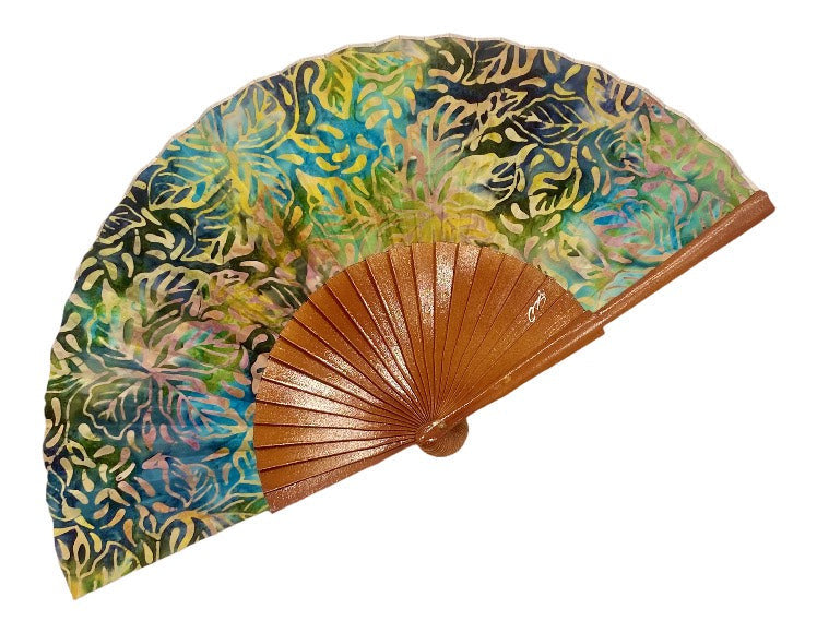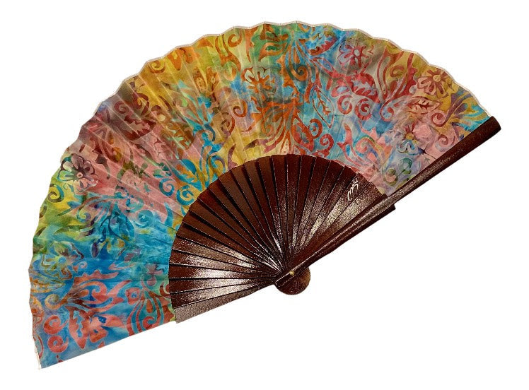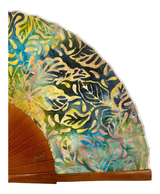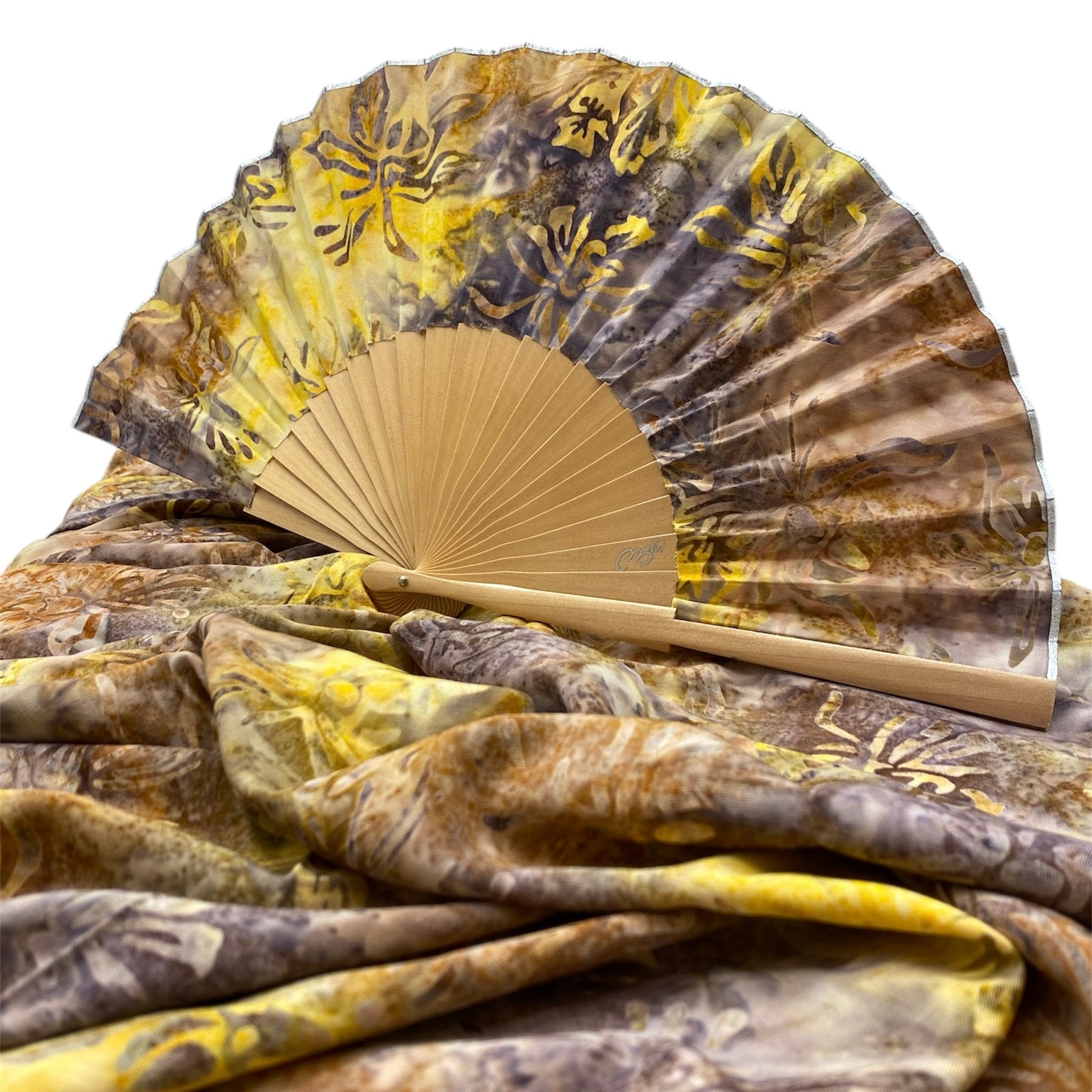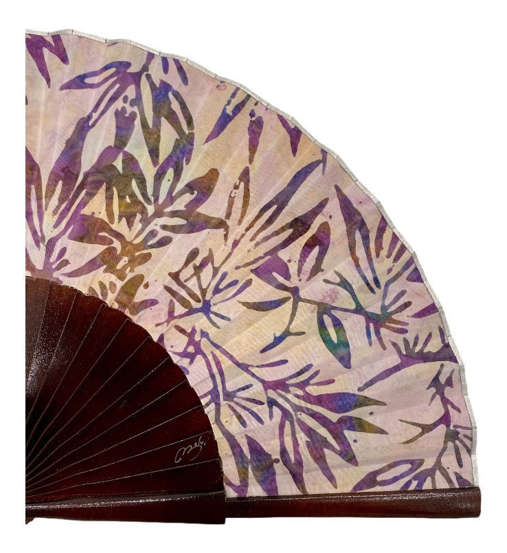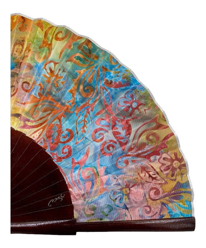 Elevate your style with this exquisite hand-painted shawl and matching fan set, crafted using the traditional batik technique. The shawl is made from soft ryon-cotton blend, offering a lightweight, elegant drape that’s perfect for any season.