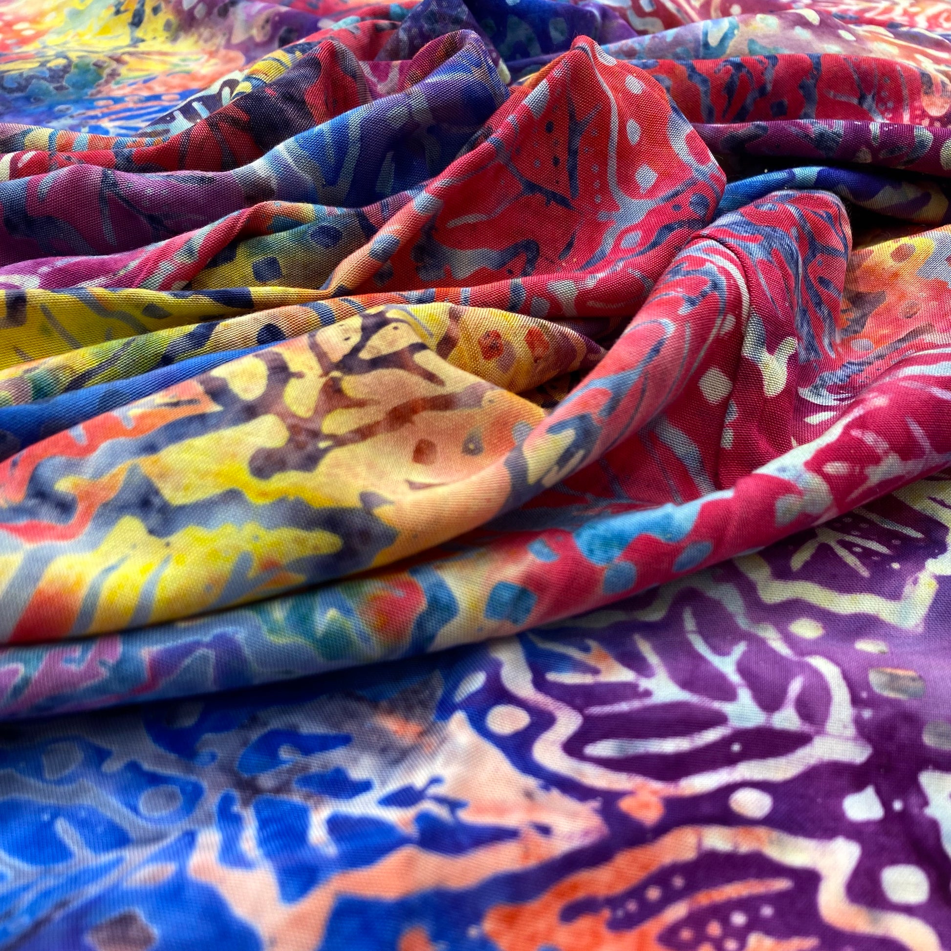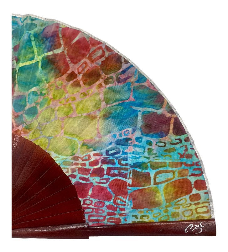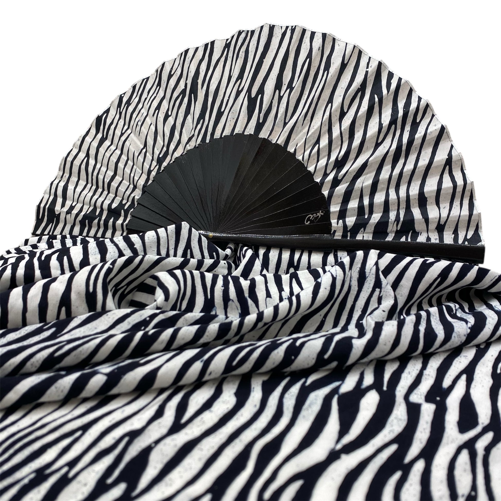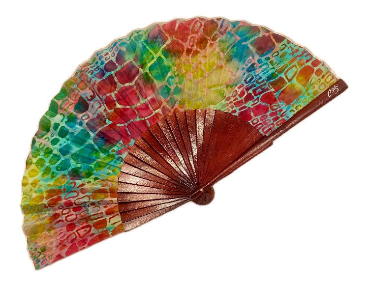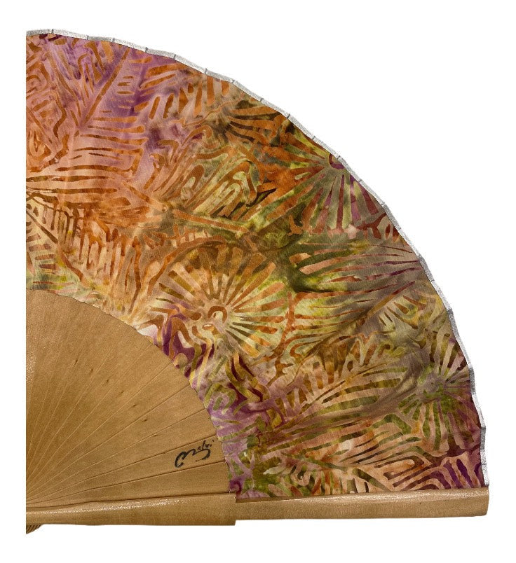 Elevate your style with this exquisite hand-painted shawl and matching fan set, crafted using the traditional batik technique. The shawl is made from soft ryon-cotton blend, offering a lightweight, elegant drape that’s perfect for any season.