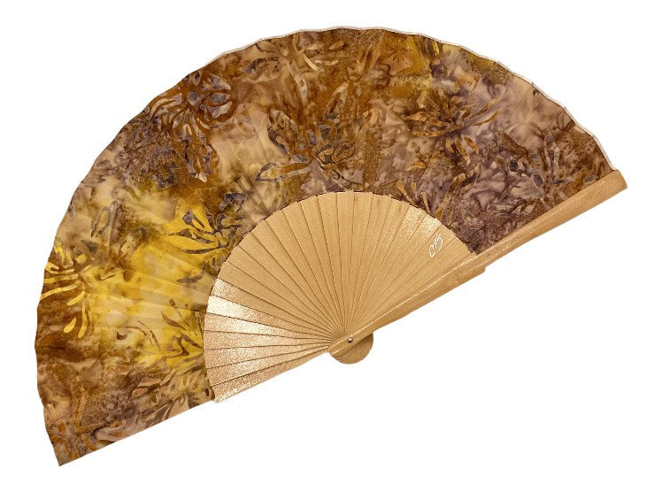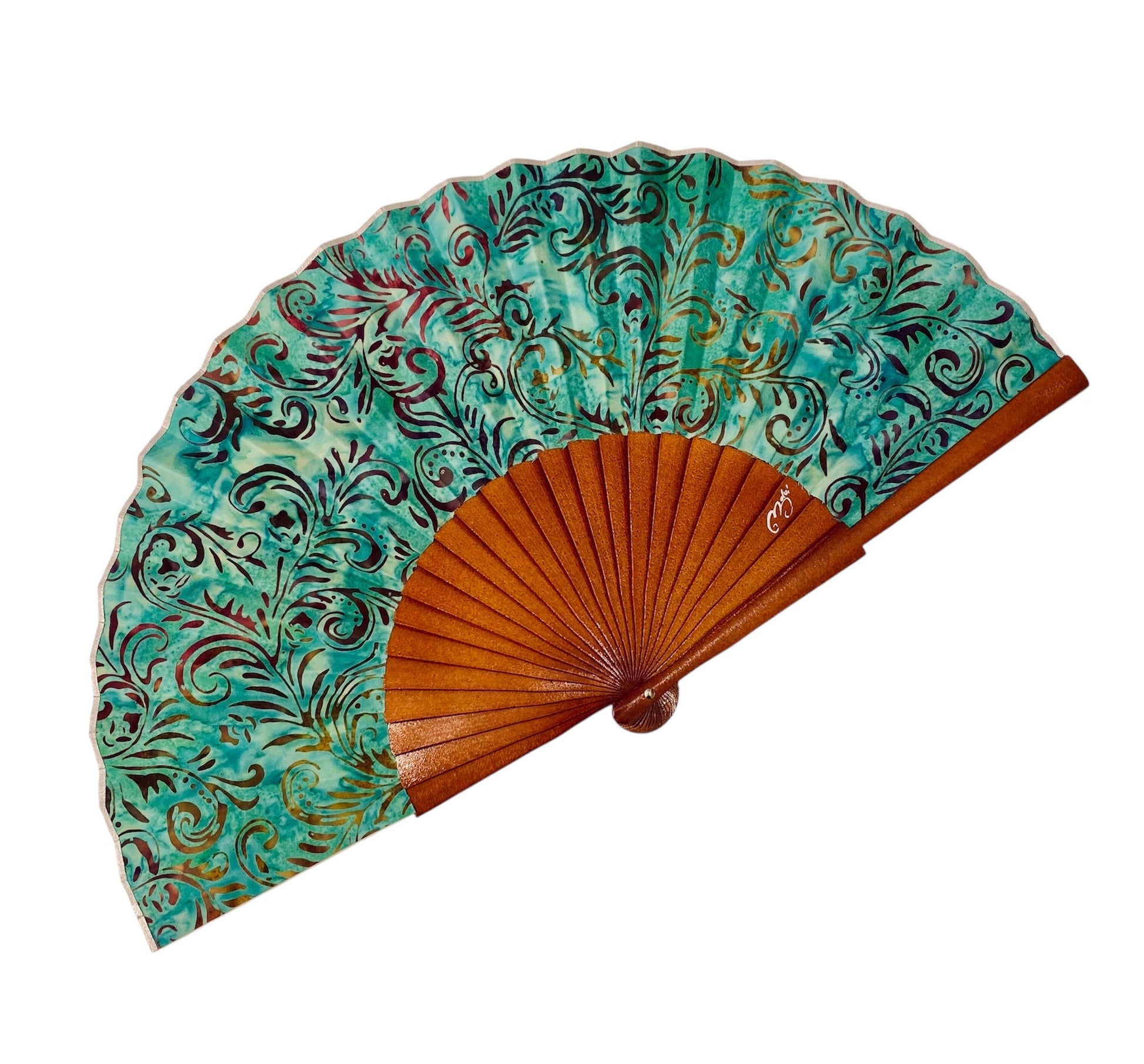The included fan is made from sturdy birch wood and covered with the same hand-paited fabric as the shawl, crating a beautifully coordinating look.