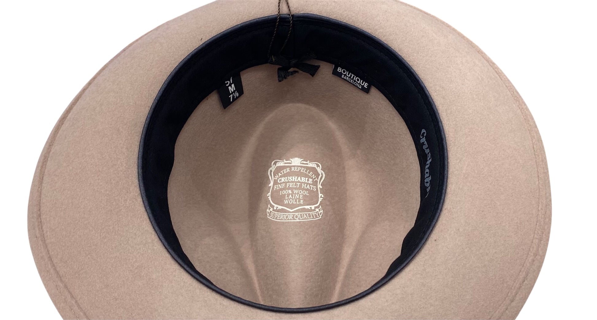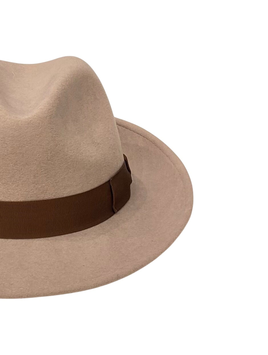 Discover the perfect blend of craftmanship and sophistication with our water-resistant felt Fedora. Expertly handcrafted from premium felt, this hat features a refined grosgrain band that adds a touch ofunderstated elegance.