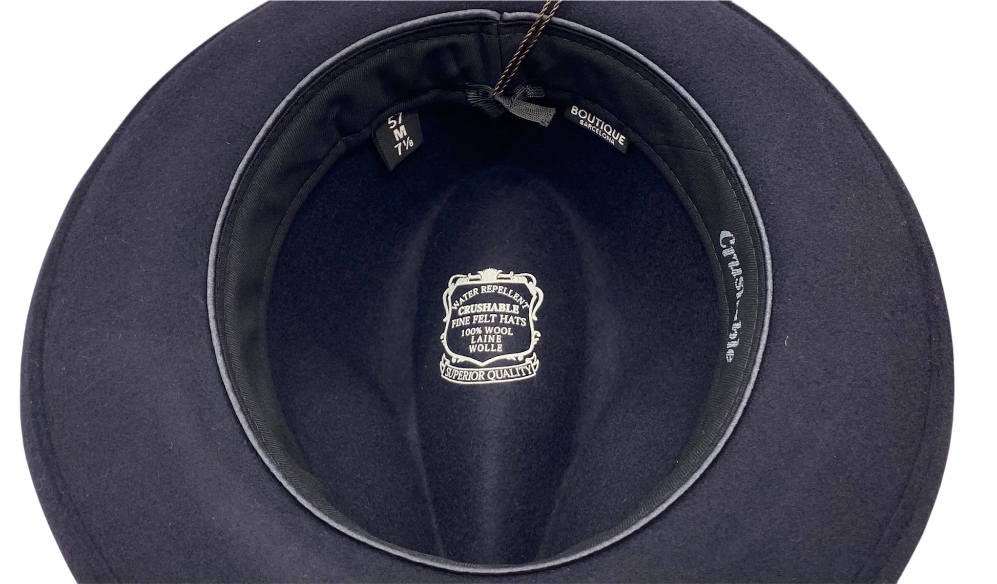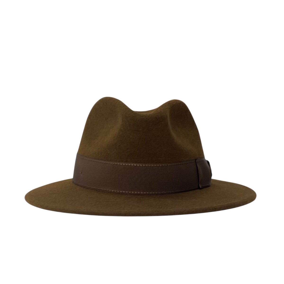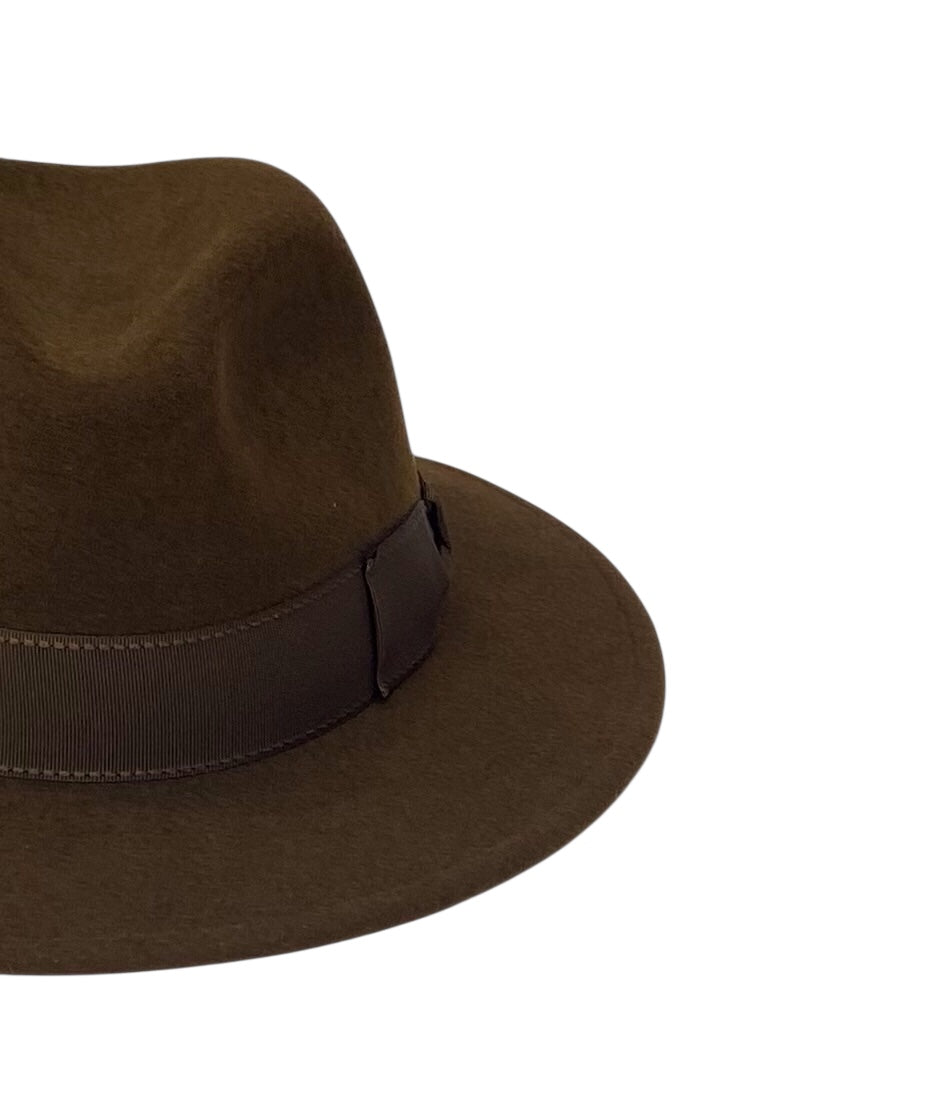 Crafted from premium water-resistant felt, this classic brown fedora combines timeless elegance with modern practicality. Its structured crown and wide brim offer both style and protection from the elements, while the tonal grosgrain band adds a refined finishing touch.