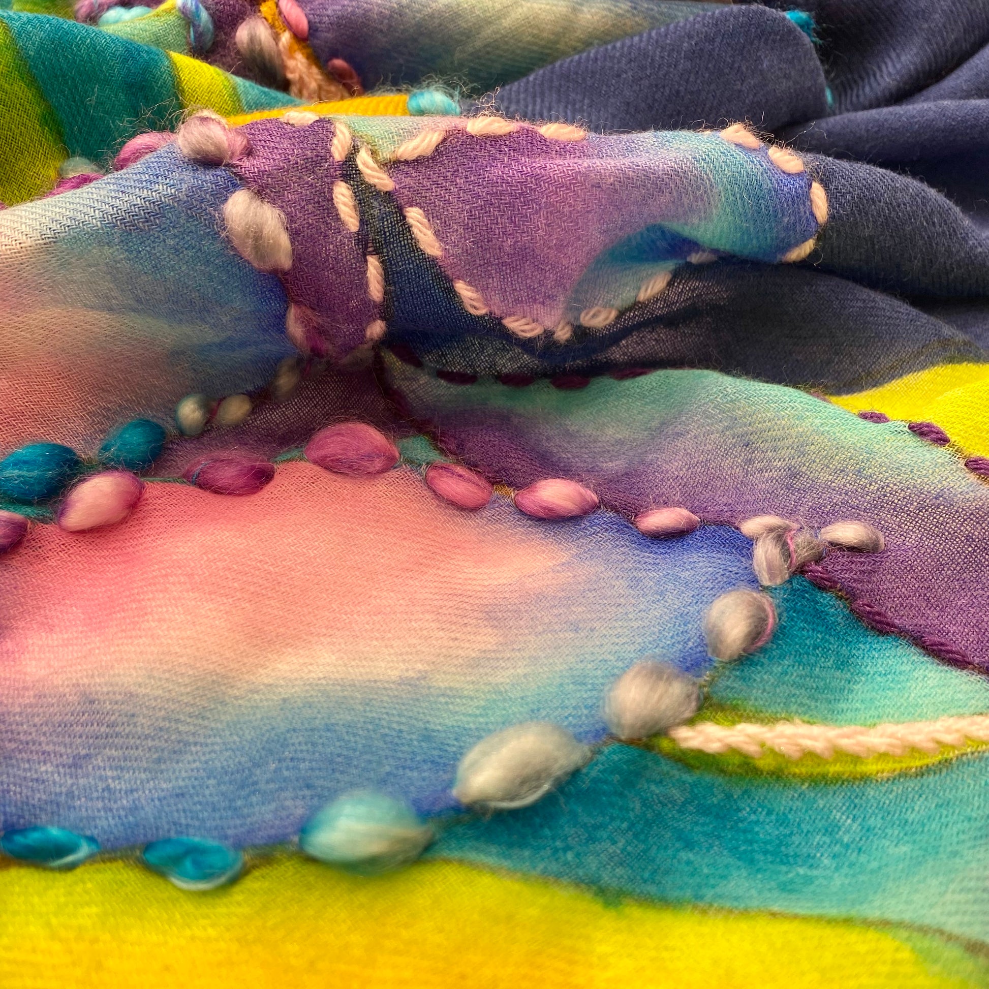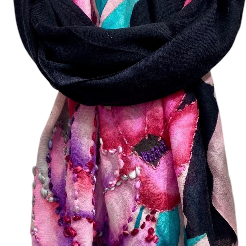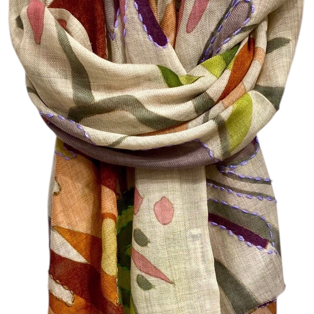 Hand-Painted Merino Wool Shawl.