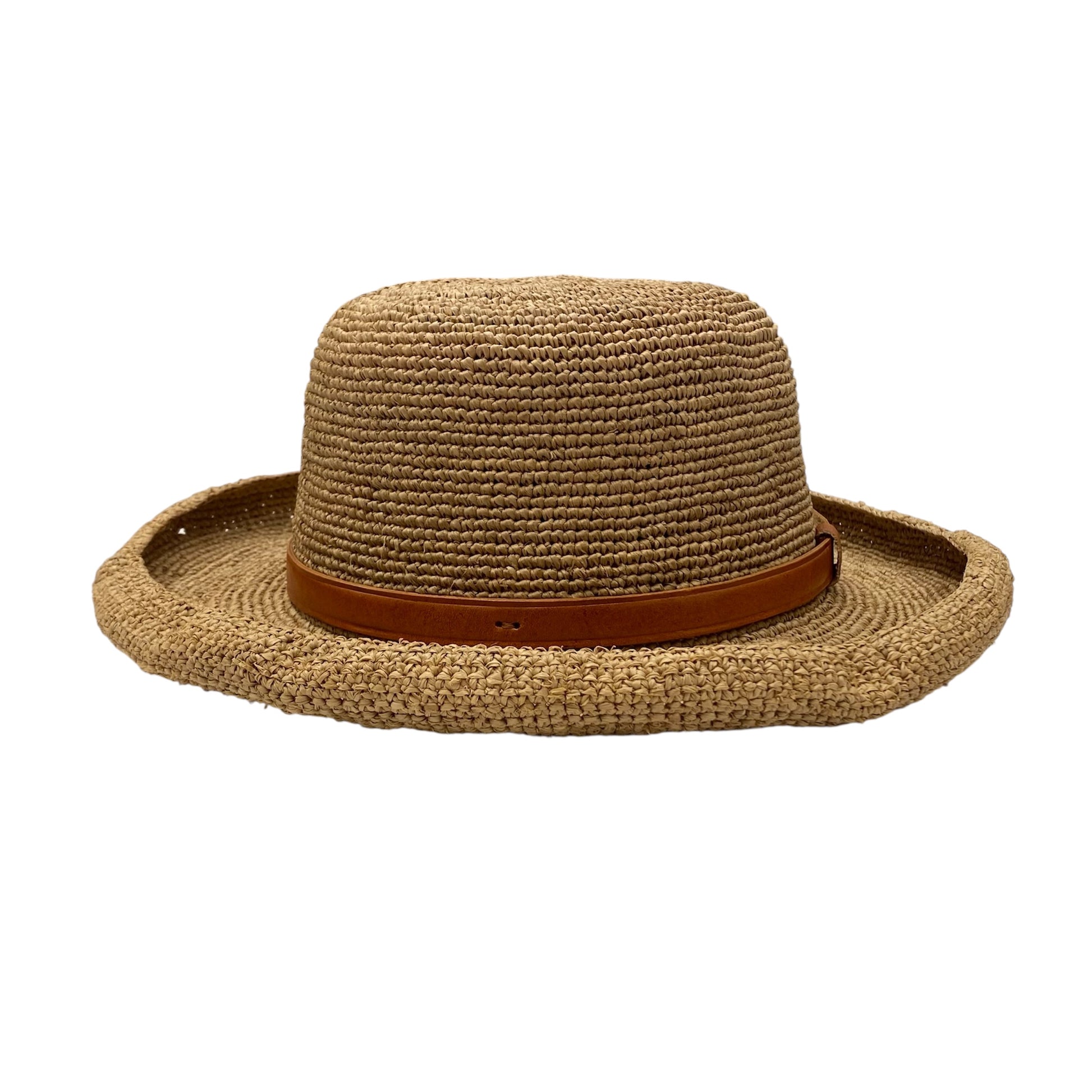 Foldable Raffia Hat with Leather Band.