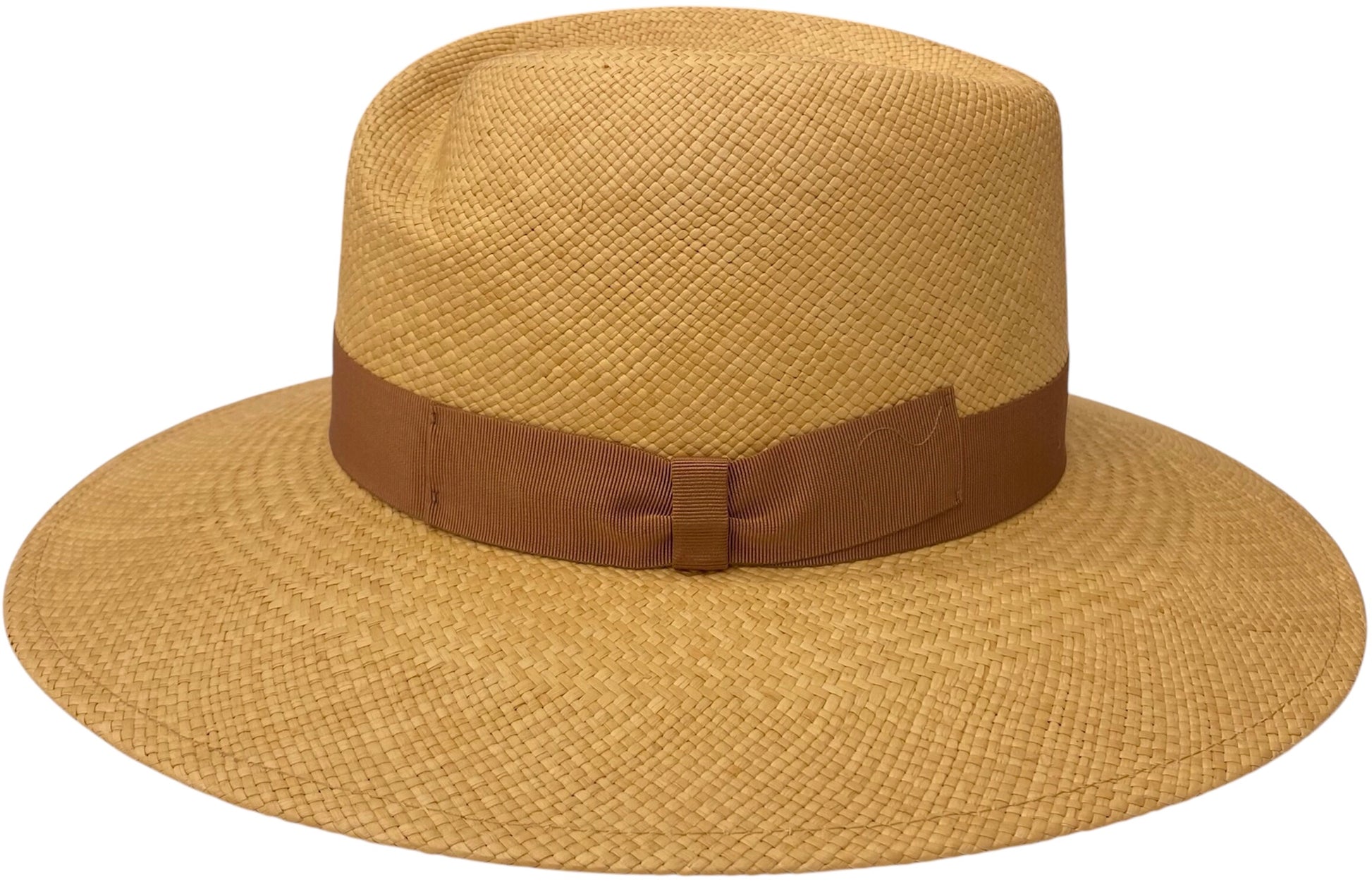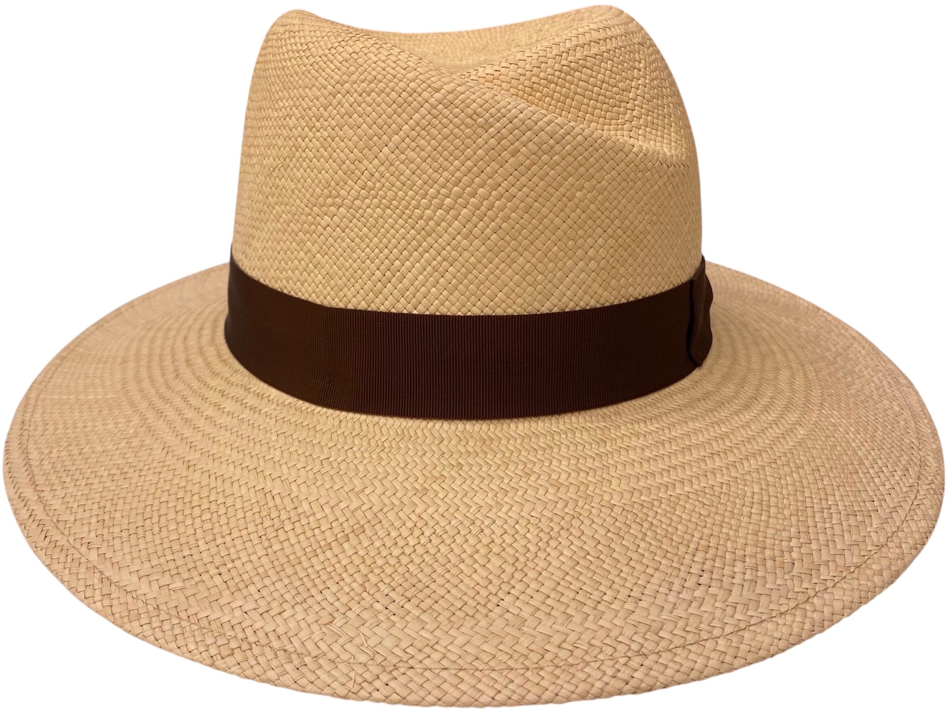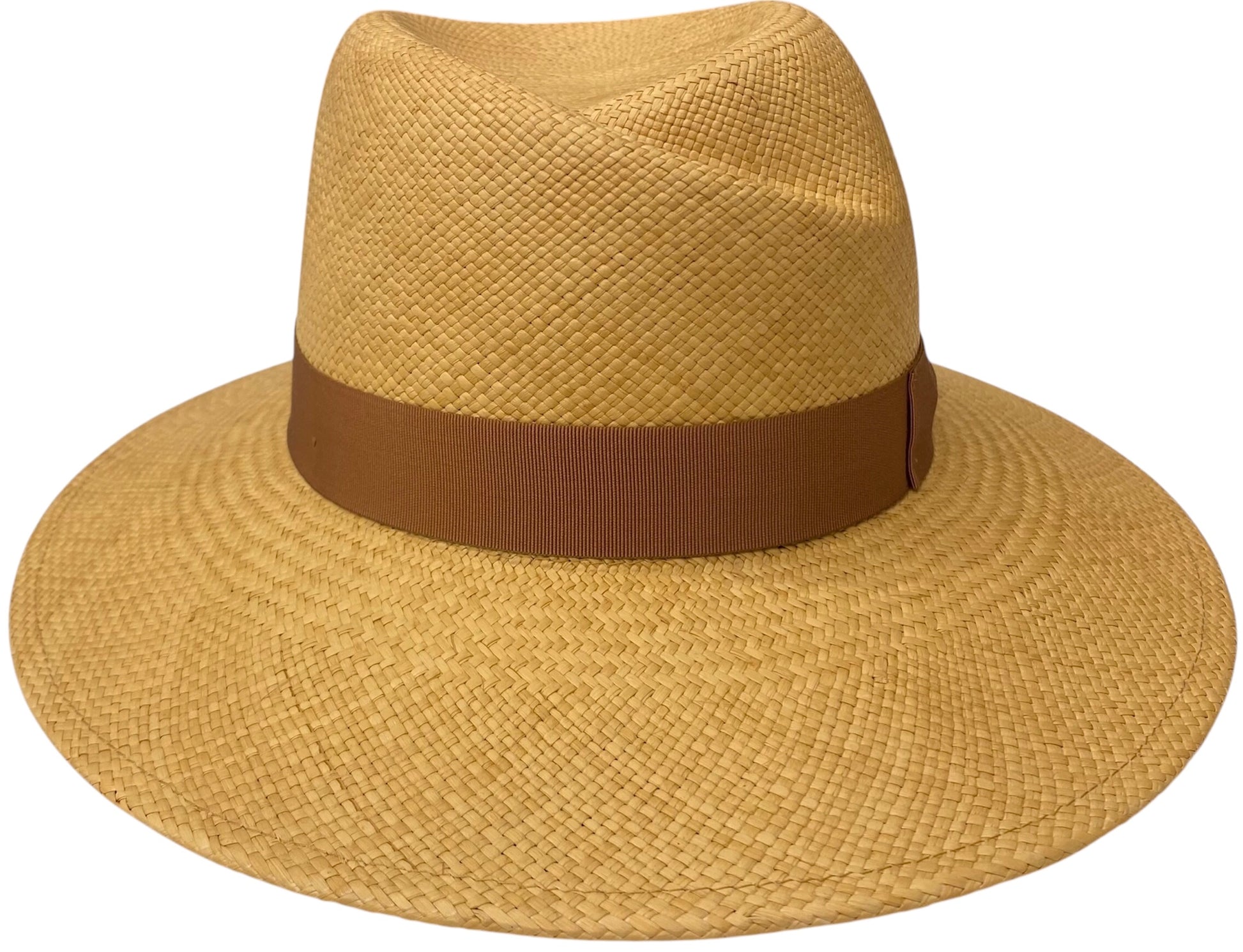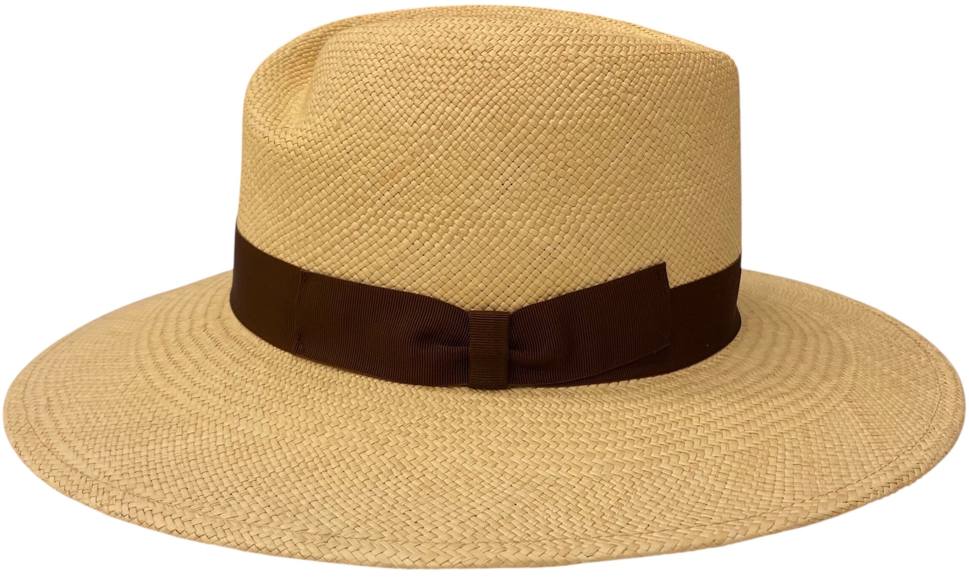 This elegant Panama hat features a tighter and more uniform weave, showcasing the craftsmanship behind its creation. Made from natural toquilla straw, it offers a sophisticated silhouette perfect for warm climates and special events.