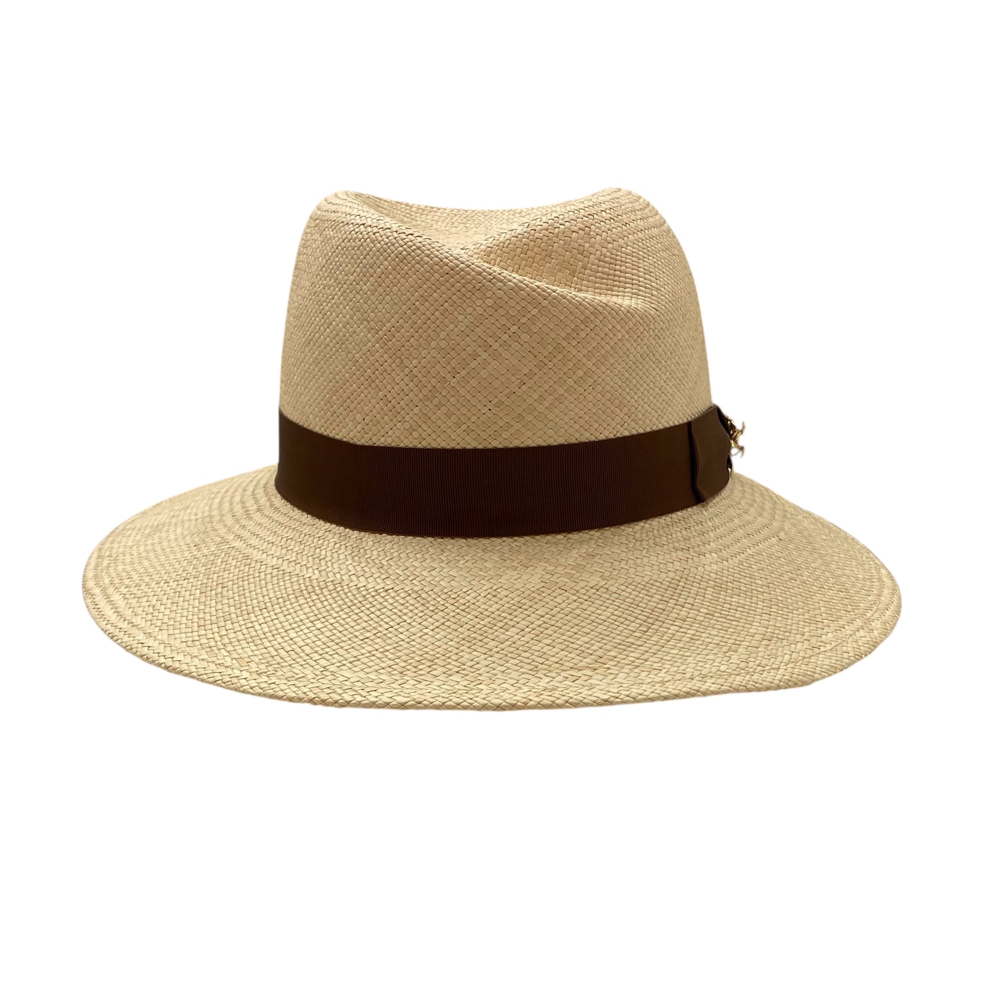 This elegant Panama hat features a tighter and more uniform weave, showcasing the craftsmanship behind its creation. Made from natural toquilla straw, it offers a sophisticated silhouette perfect for warm climates and special events.