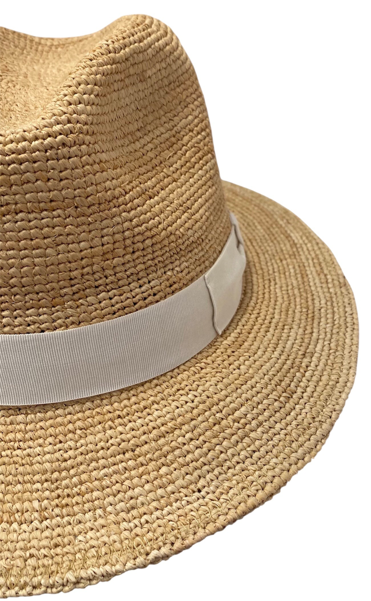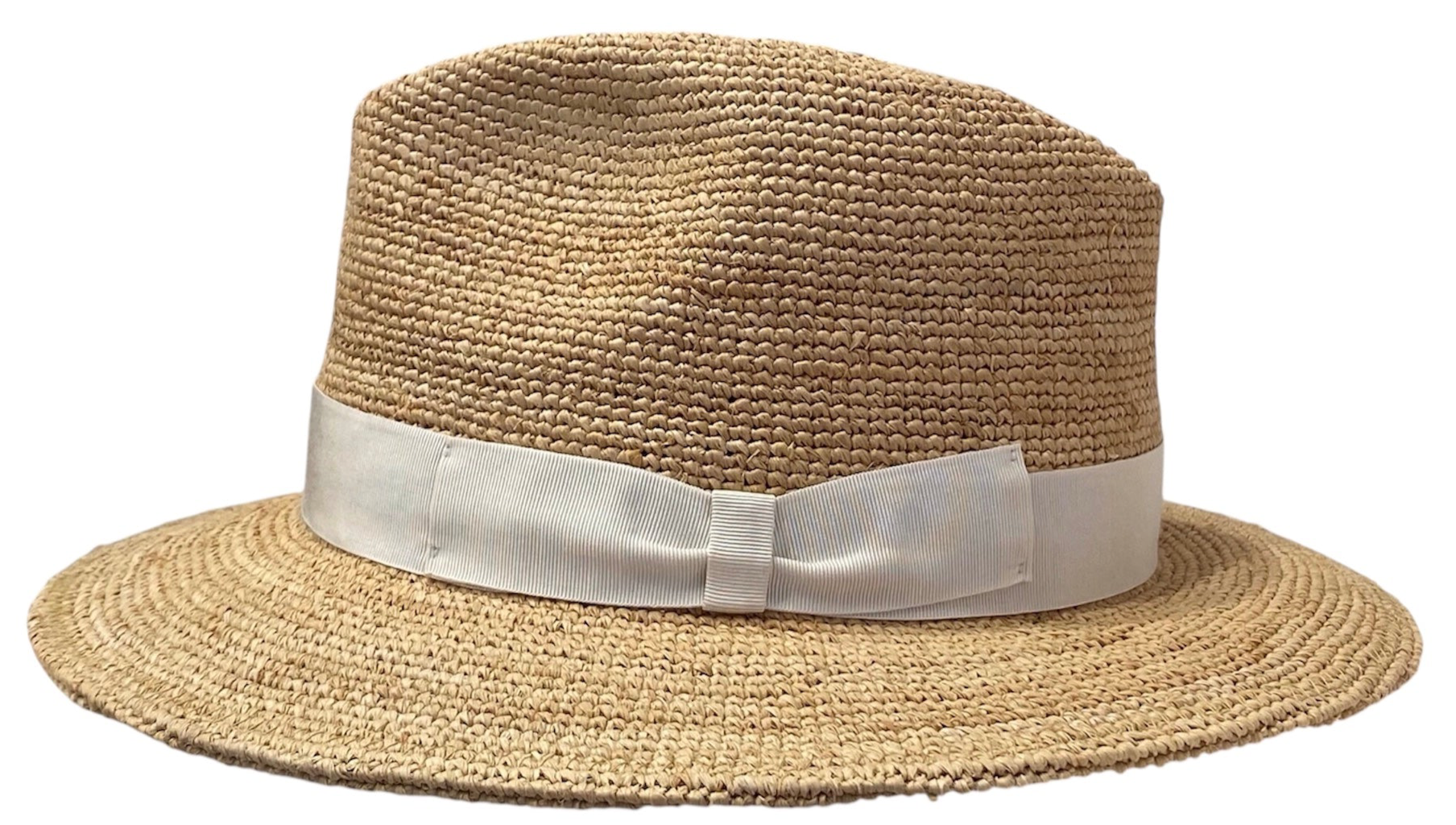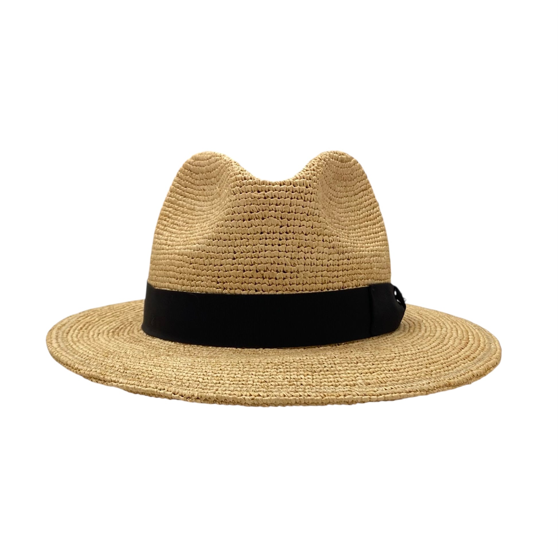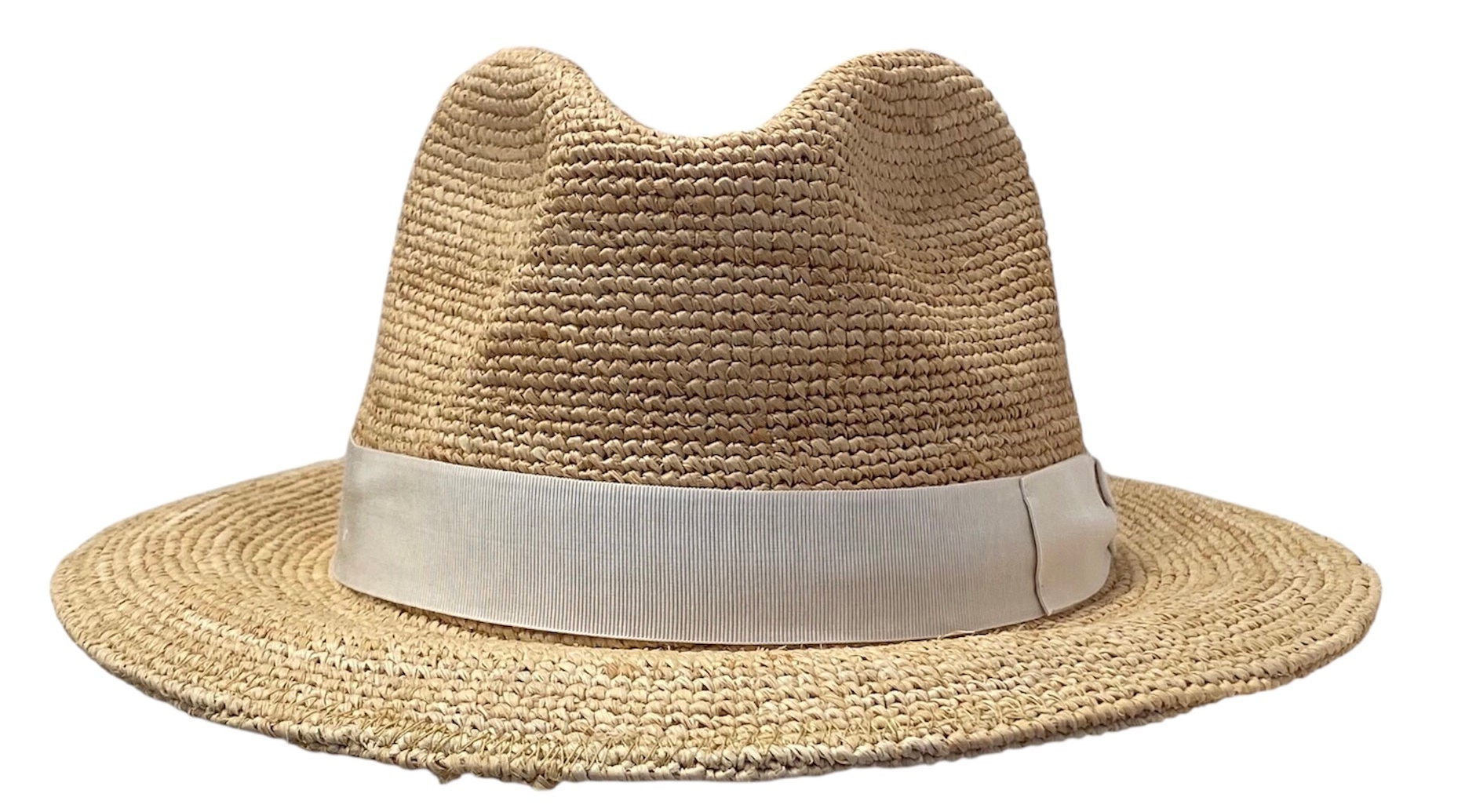 This fedora-style hat combines traditional elegance with a fresh, lightweight design for summer. Made from handwoven straw, it features a defined crown and a wide brim that offers excellent sun protection.