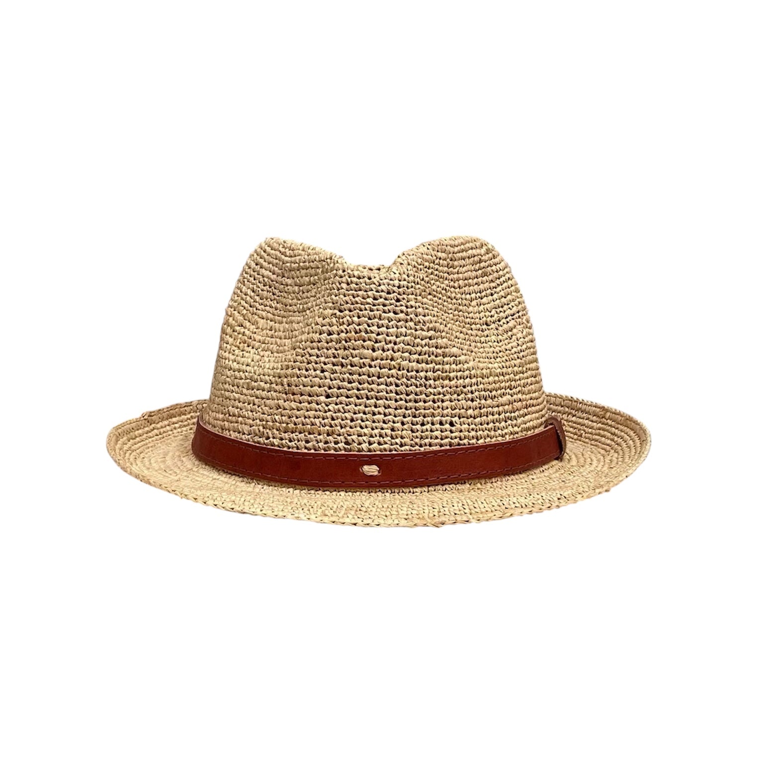 An essential accessory for those who value bothstyle and functionality. This fedora-style hat is finely woven from natural raffia, making it lightweight, breathable, and perfect for sunny days.