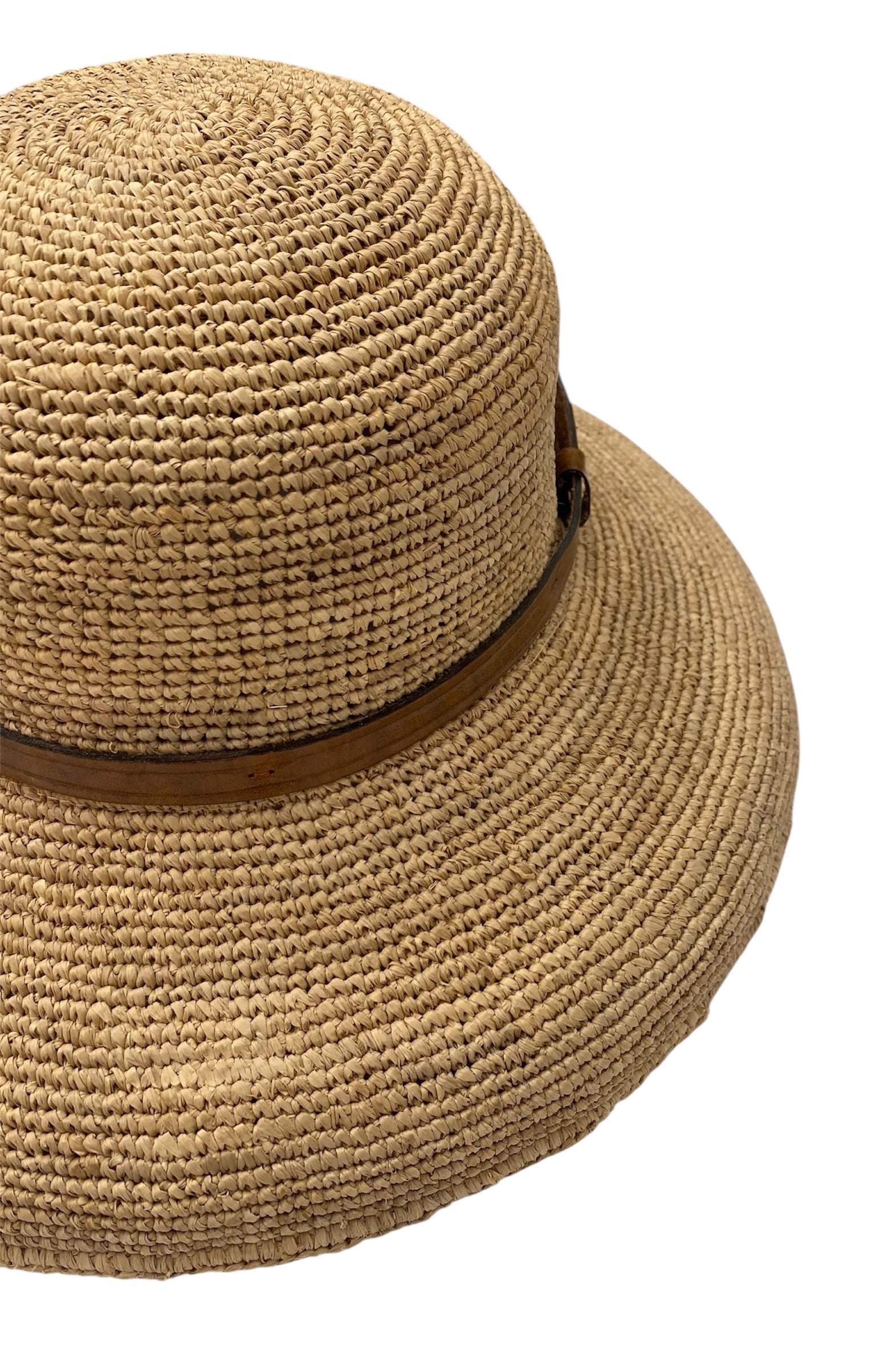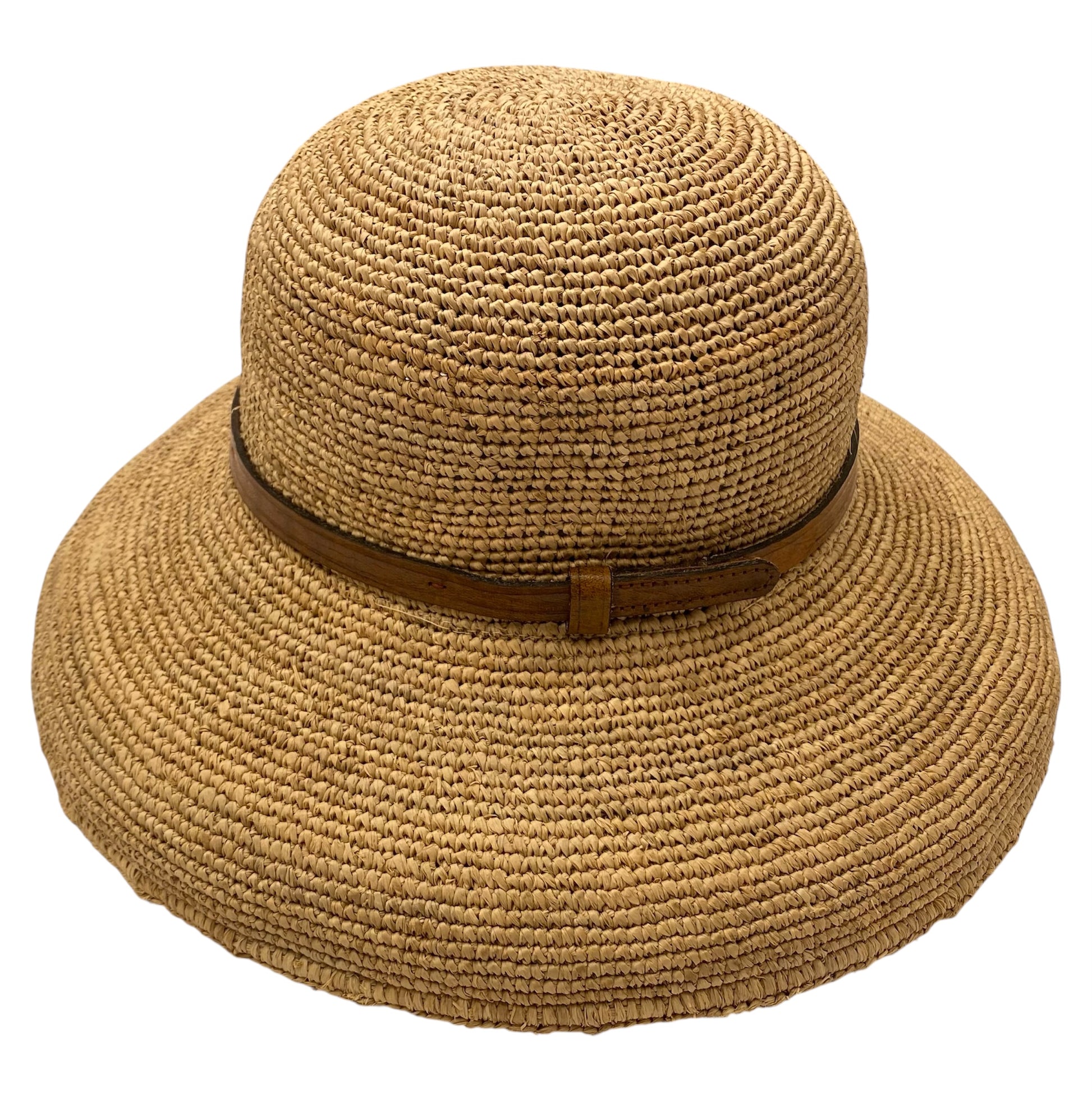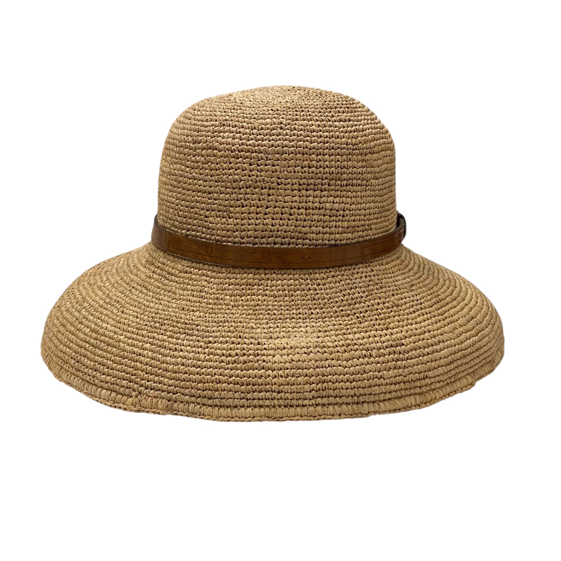 Foldable Raffia Hat with Leather Band.