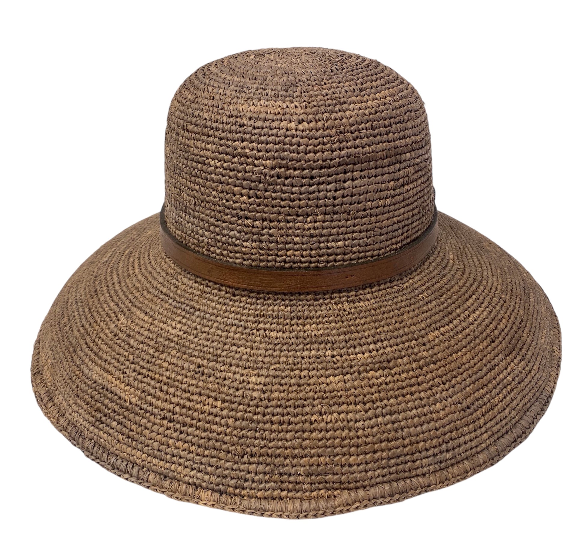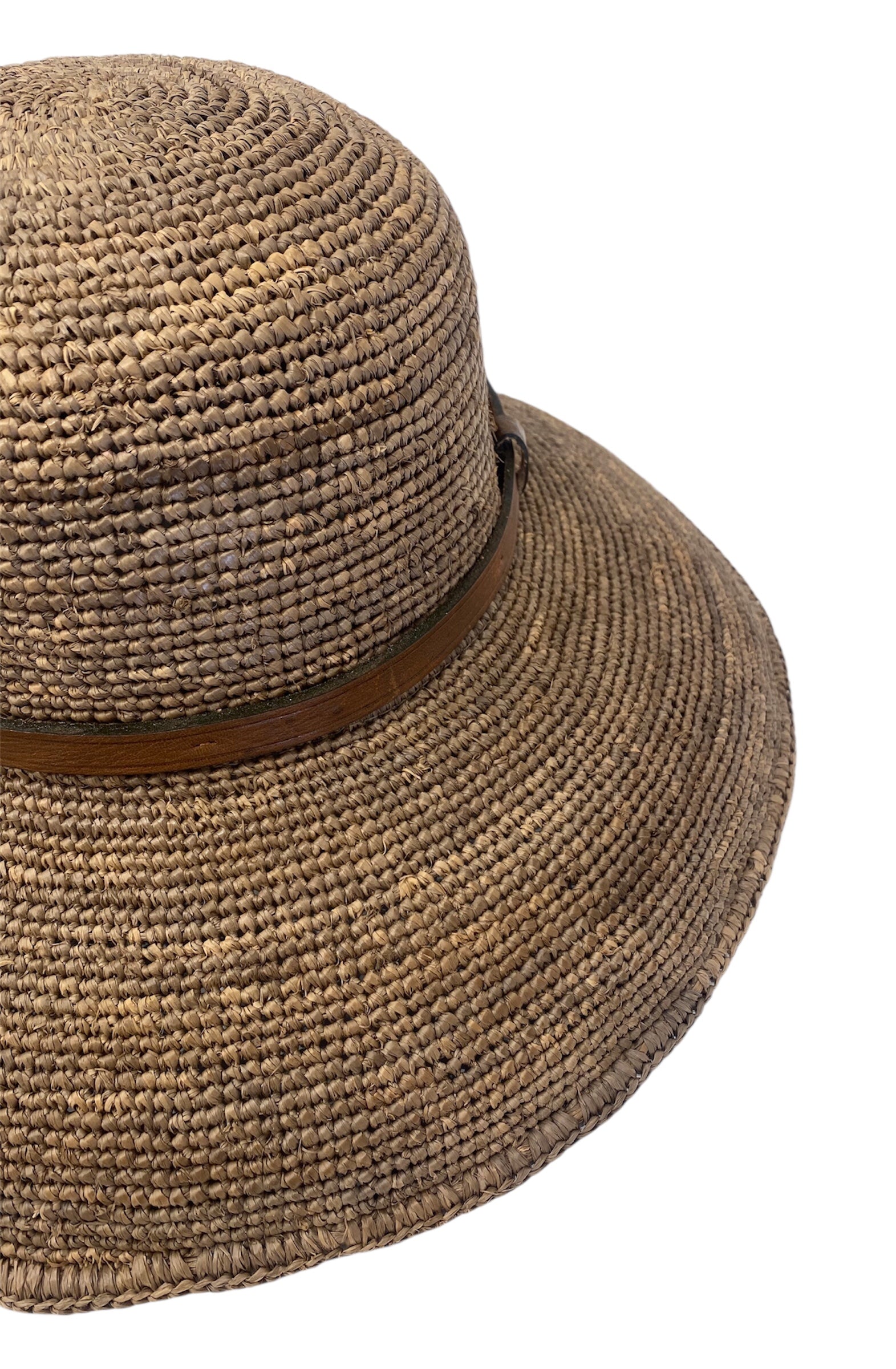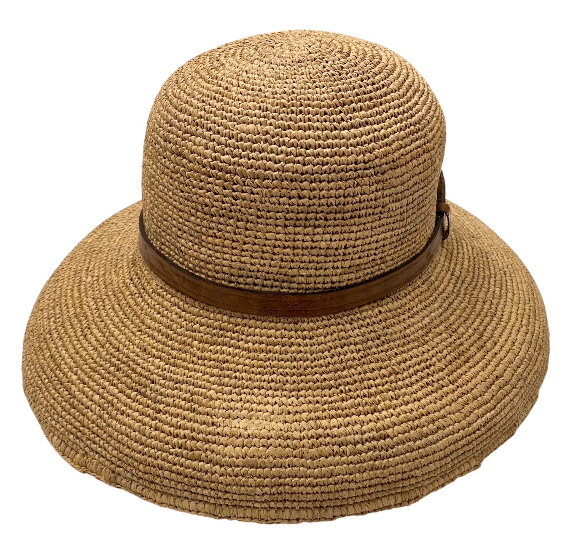 Foldable Raffia Hat with Leather Band.