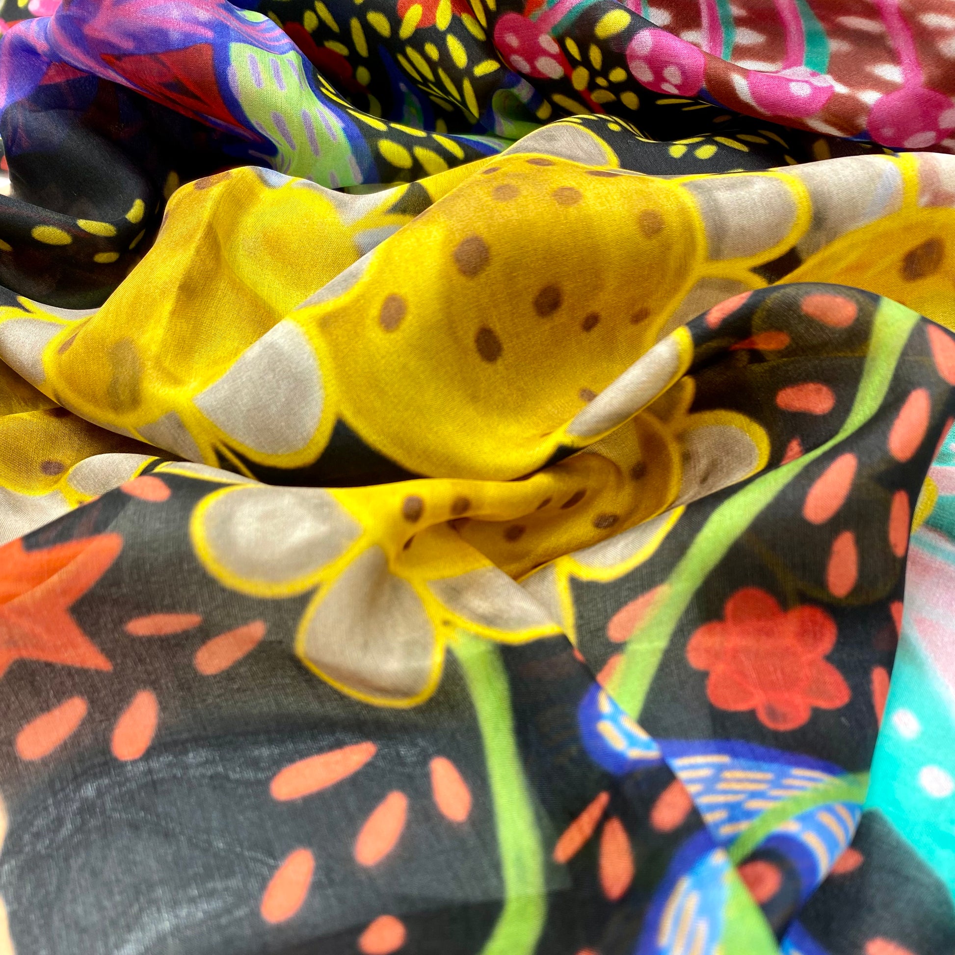 Elevate your style with this elegant silk scarf, featuring a vibrant and colorful print. Made from hight-quality silk, it offers a soft, smooth texture and lightweight feel, perfect for year-round wear. Its versatile design adds a touch of sophistication to both casual and formal outfits.