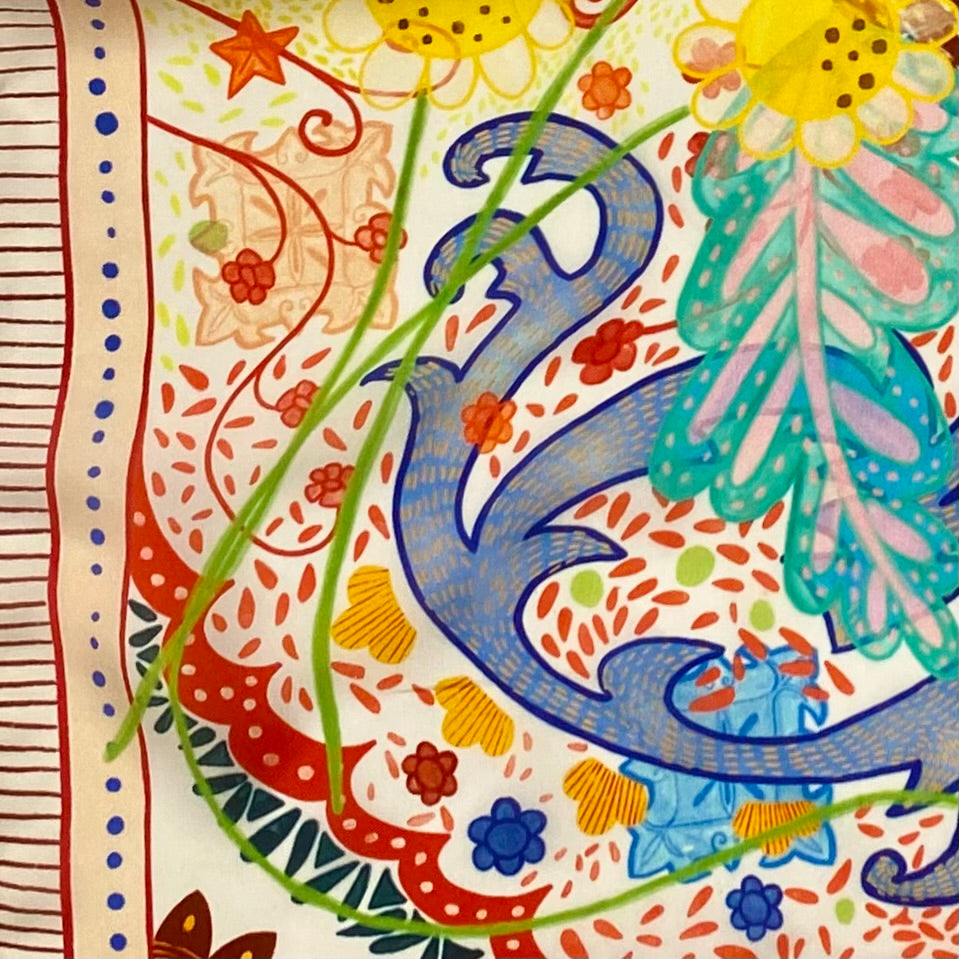 Elevate your style with this luxurious silk scarf, crafted from soft, high-quality silk for a smooth and elegant feel. Lightweight yet versatile, it’s perfect for adding a touch of sophistication to any outfit. Whether worn around the neck, as a headscarf, ot tied to your favorite bag, this accessory offers endless styling possibilities.