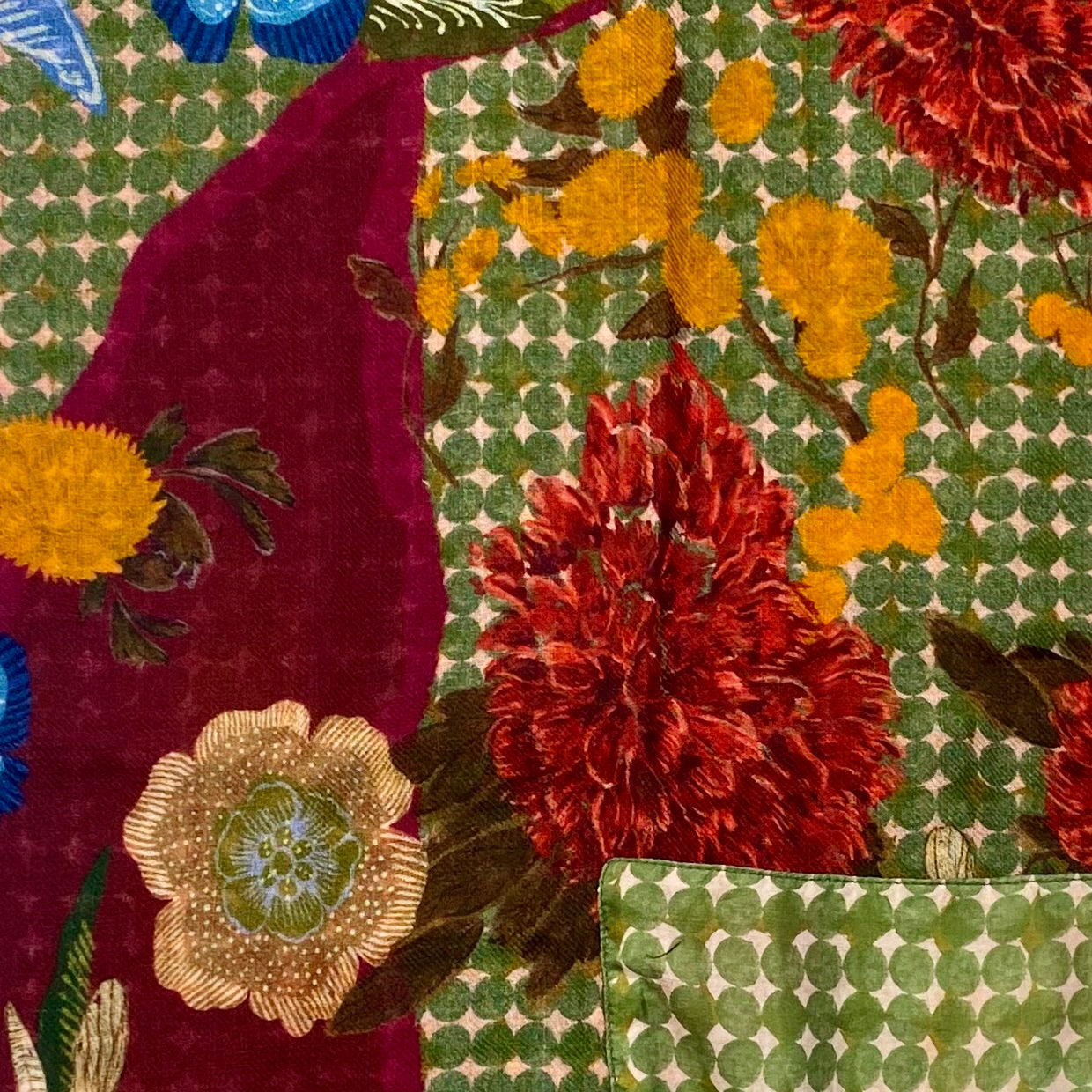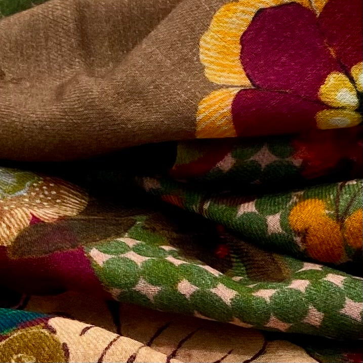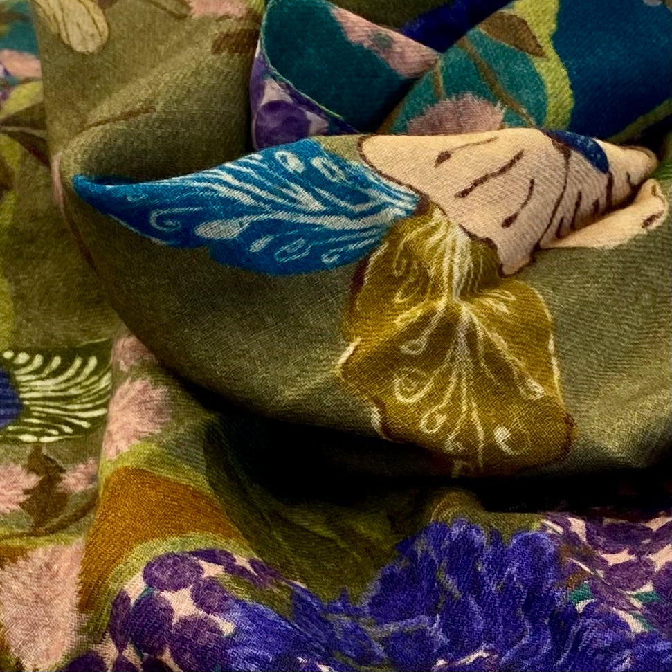 Double-face Wool and Silk Flower Scarf.