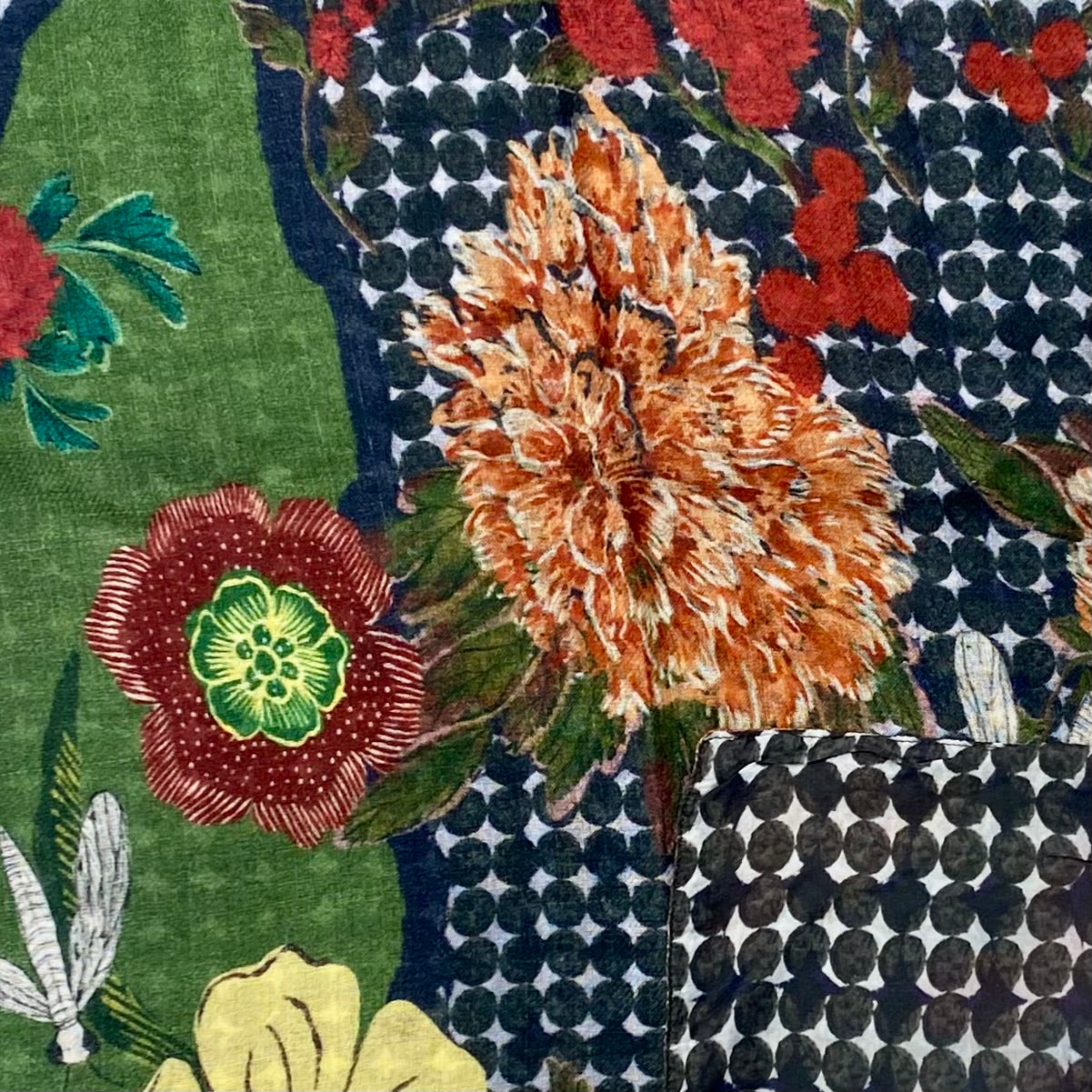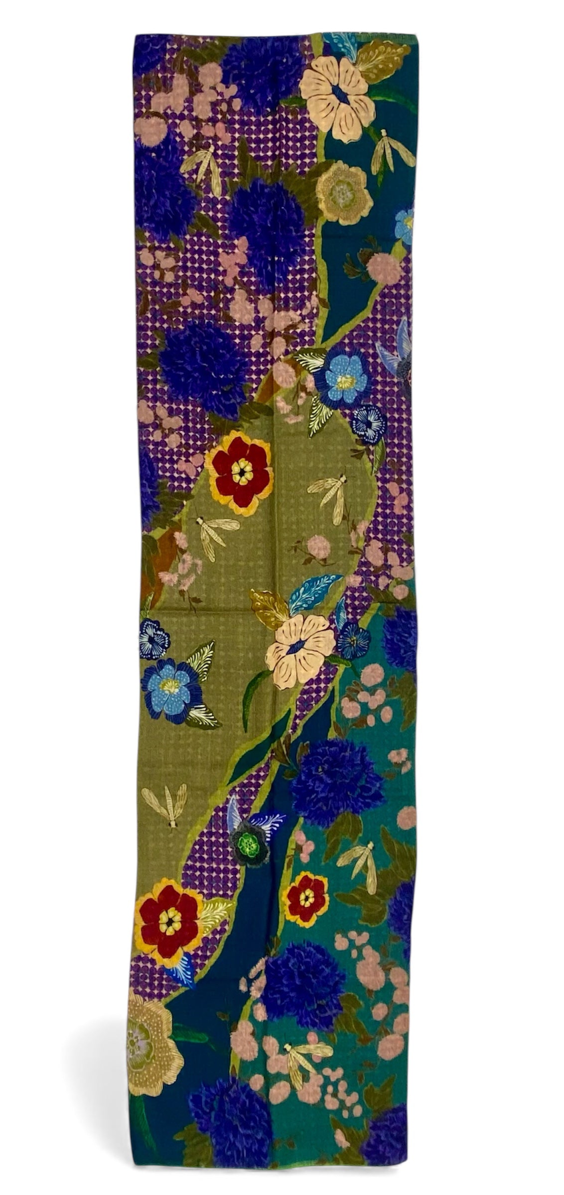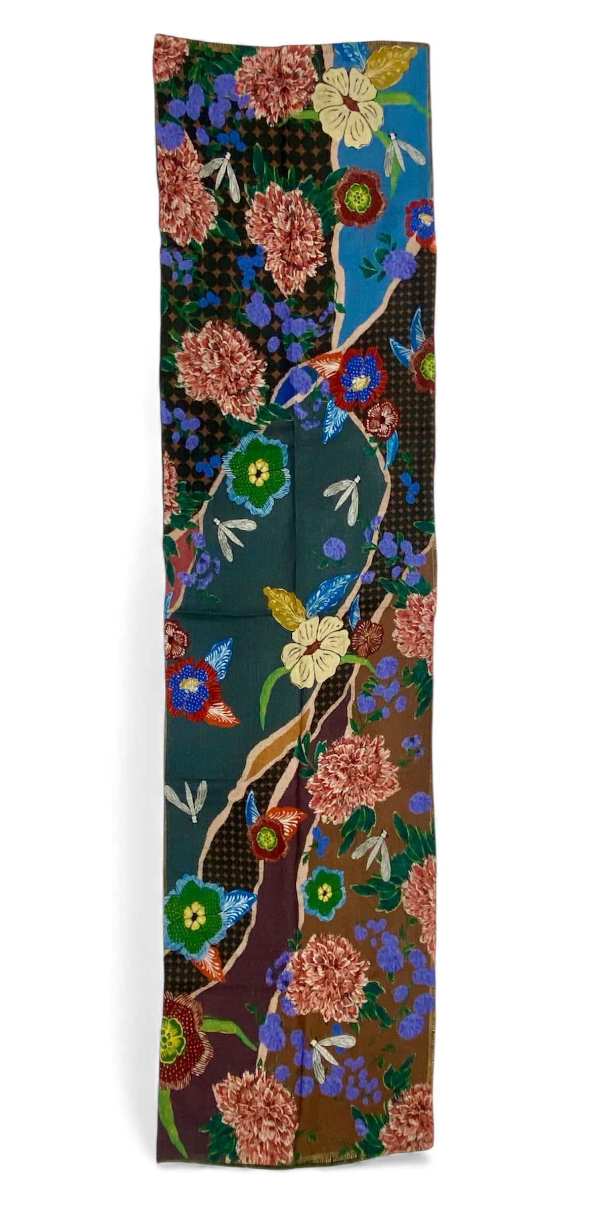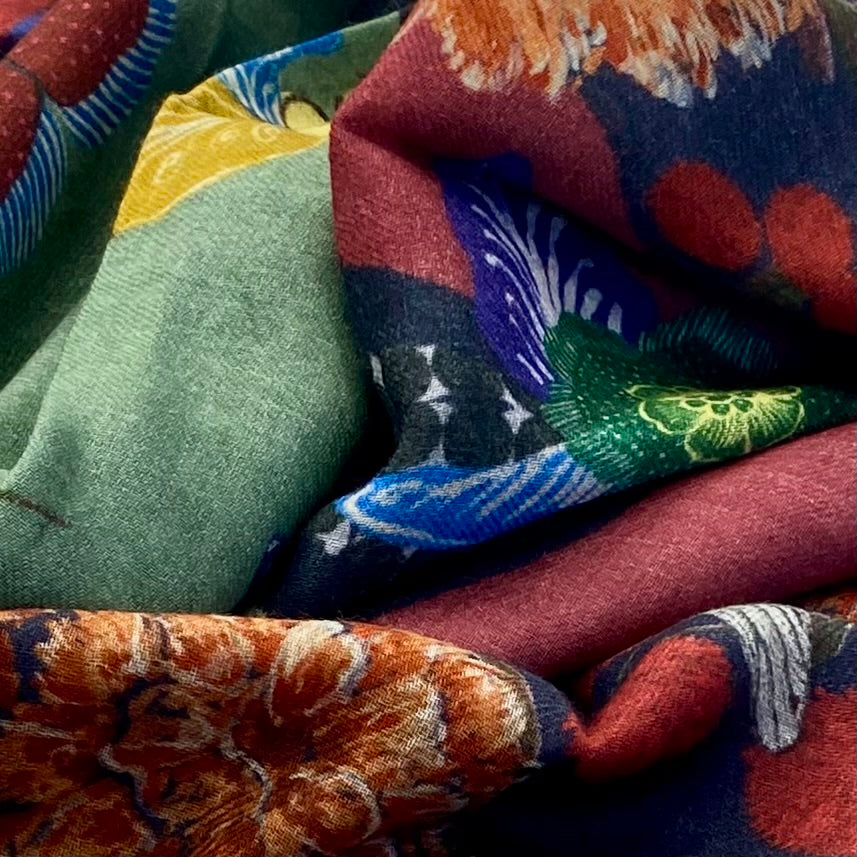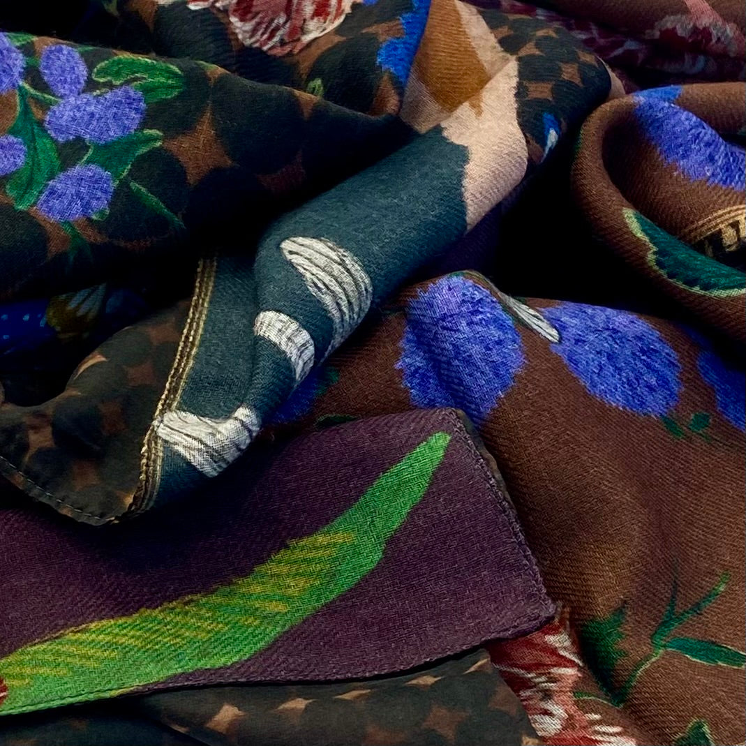 Elevate your style with this exquisite double-face scarf crafted from a luxurious blend of wool and silk. Each side reveals a unique floral composition, allowing you to switch looks effortlessly while enjoying the same refined softness and warmth. Vibrant colors and rich botanical motifs give this piece an artistic, timeless charm. Lightweight yet cozy, it’s the perfect accessory to enhance both everyday outfits and elegant ensembles. A must-have for anyone who appreciates exceptional fabrics, craftsmanship, and versatile design.