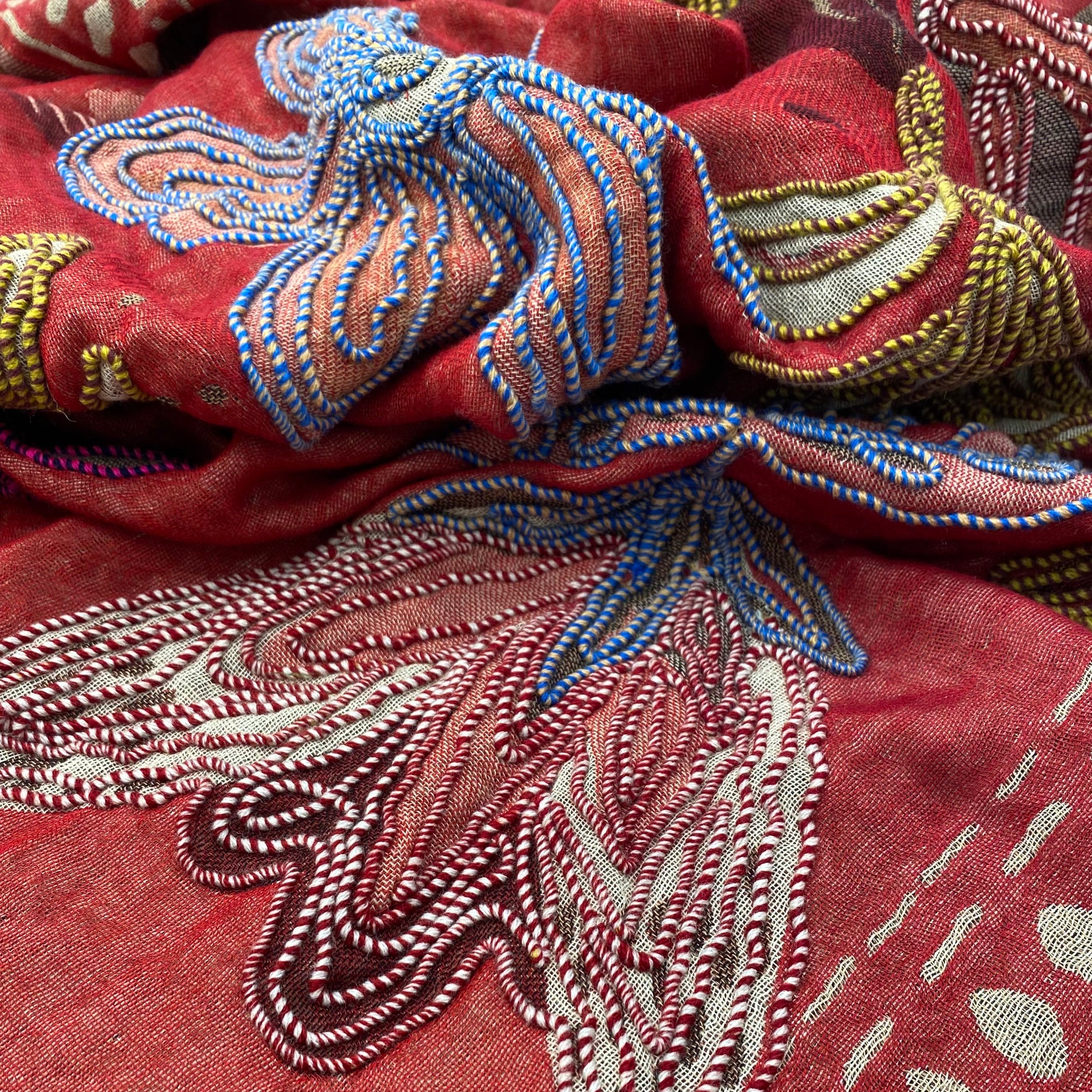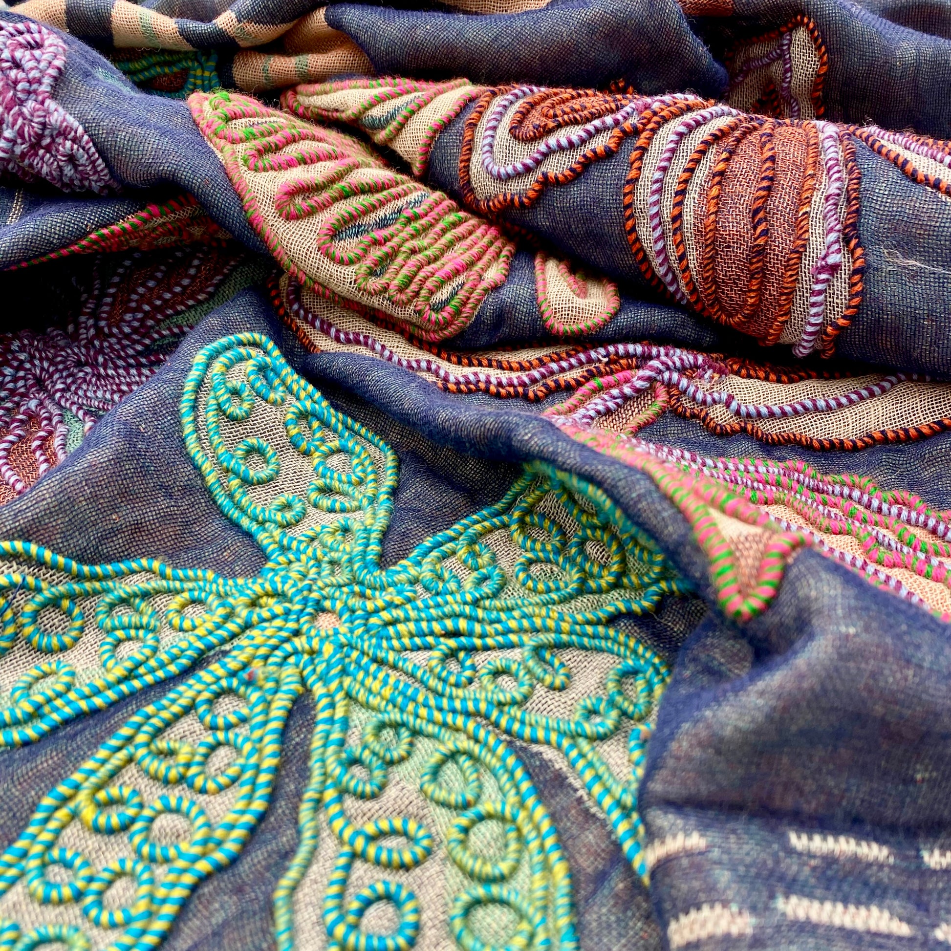 Wrap yourself in refined elegance with this handcrafted shawl made from a soft blend of cotton and wool. Each piece is unique, adorned with delicate floral embroidery meticulously stitched by skilled artisans. Lightweight yet warm, it’s perfect for elevating an elegant outfit or adding a touch of sophistication to your everyday look.