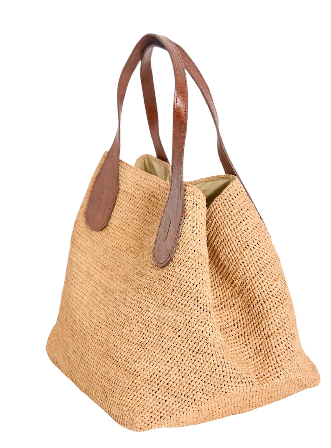 This generously sized bag is the perfect balance of functionality and style. Handcrafted from natural raffia with high-quality leather details, it’s ideal for those seeking a unique accessory with character and ample capacity.